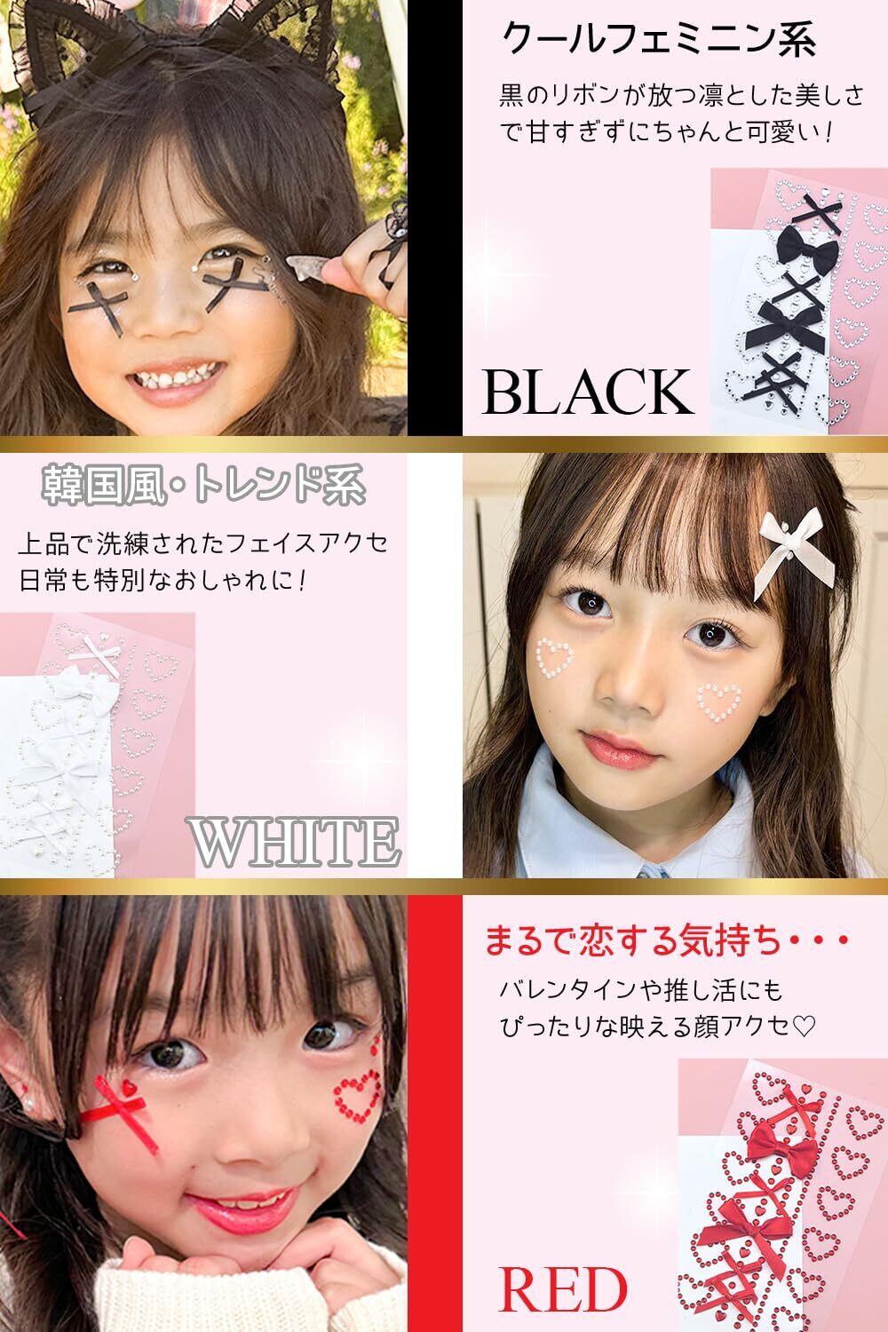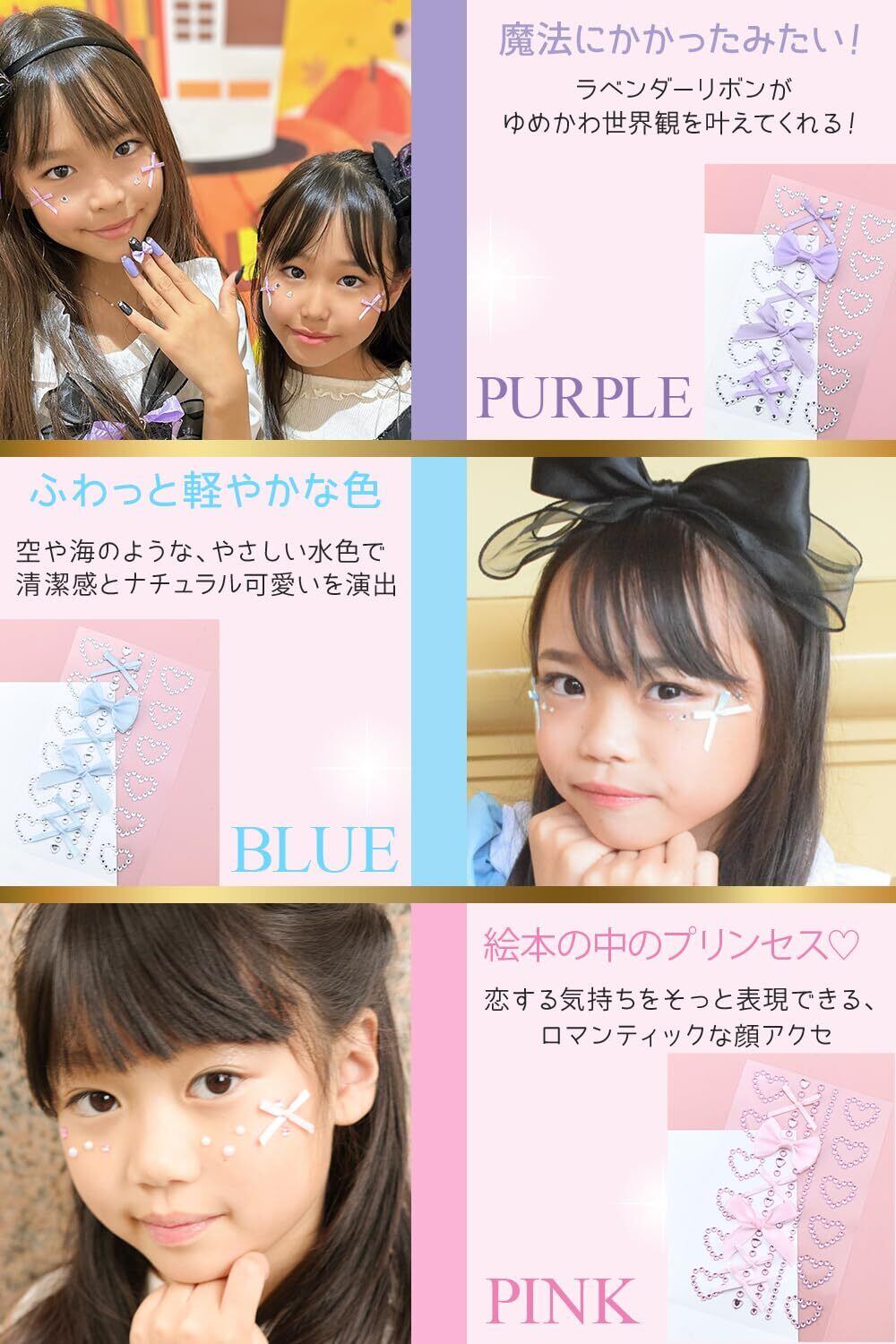 【色の特徴】「今日の気分はコレ!」と選べるのも魅力の一つ。【WHITE/韓国風トレンド】上品で洗練された顔アクセで日常も特別な紐おしゃれに【BLACK/クールフェミニン】黒のリボンが放つ凛とした美しさで甘すぎずにちゃんと可愛い【RED/まるで恋する気持ち】バレンタインや押し活にもピッタリな映える顔アクセ【PINK/絵本の中のプリンセス】恋する気持ちをそっと表現できるロマンティックな顔アクセ【BLUE/ふわっと軽やかな色】空や海のような、やさしい水色で清潔感とナチュラル可愛いを演出【PURPLE/魔法にかかったロマンス】ラベンダーリボンがゆめかわ世界観を叶えてくれる