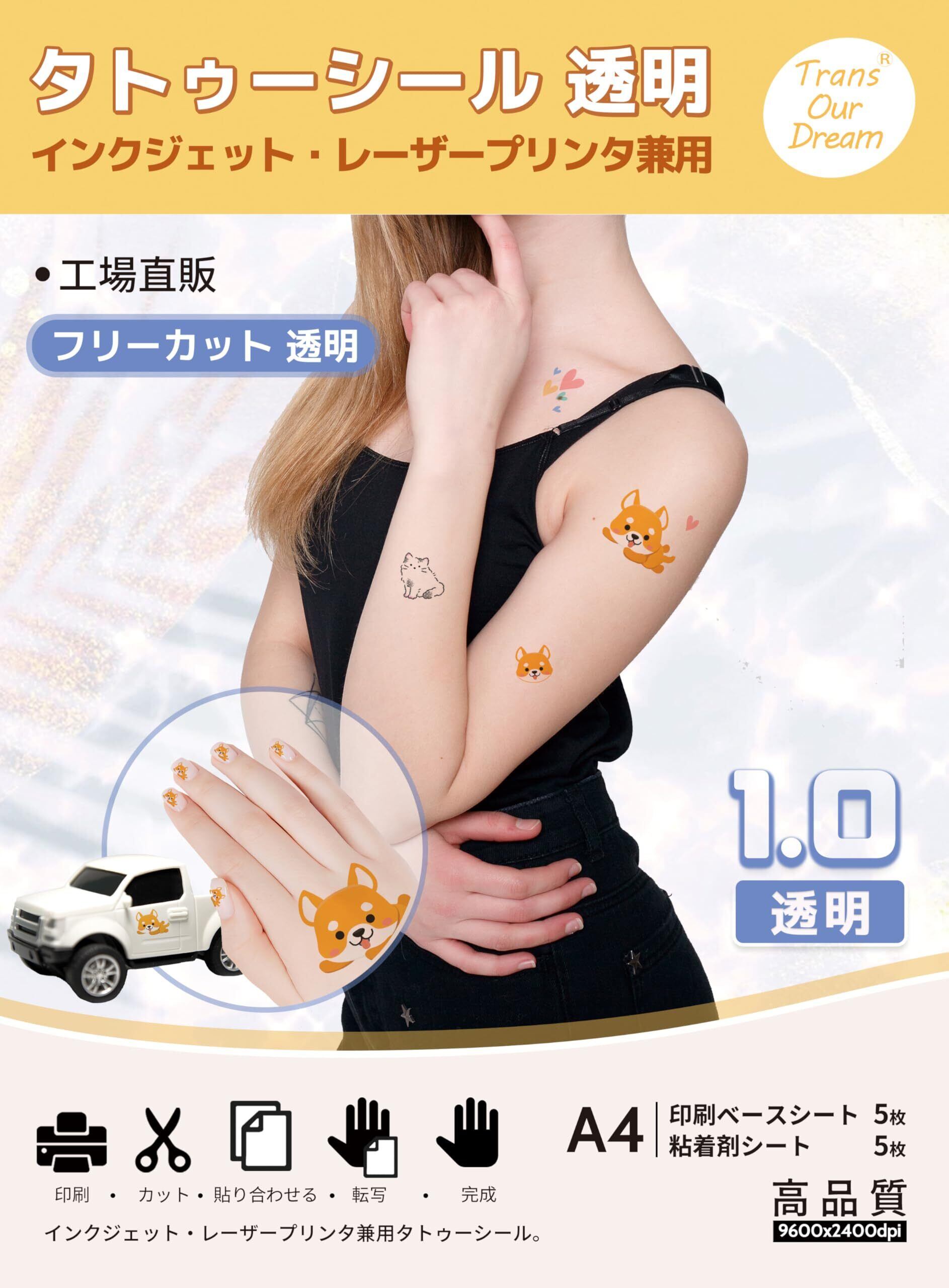 【在庫セール】TransOurDream タトゥーシール 透明 A4 10セット テンポラリータトゥー 弱粘着 刺青シール 入れ墨シール タトゥステッカー タトゥー印刷 ボディータトゥー tattoo JP-12-10