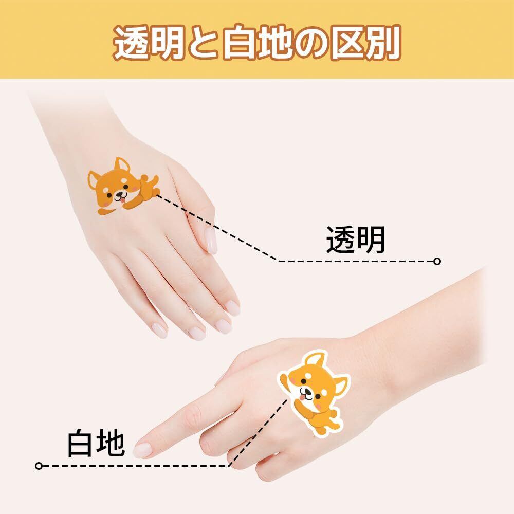 特性:無毒性、安全、使用方法簡単、レーザープリンター&インクジェットプリンター兼用、剥がれやすい、幅広い使用範囲(肌、木材、ガラス等)