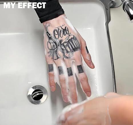 【Instruction】 1:Clean the area where you want your tattoo to be placed and let it dry completely. 2:Peel off the tattoo film and place the film face down on the desired area, press lightly to fit against the skin. 3:Use a small watering can or damp towel to completely soak the paper. 4:Gently press and hold the tattoo for 20 seconds, then peel off completely. Depending on your skin, the tattoo will turn dark blue or black within 24 hours. 5:For best results, avoid sweating or showering for 6 hours. Hydrate, moisturize and of course... show off! 【Color Time】 It is a faint mark at the beginning, and gradually develops color after a few hours, and it takes 24-36 hours for full color development. Can stay for 1-2 weeks. *3-6 days 【Ear/shoulder/neck/hand】 *6-10 days 【arm/body torso】 *10-15 days【thigh/calf/ankle】 (The color development and retention time of different parts of the body is different, and it also varies from person to person) 【How to remove】 Tattoos are in the epidermis of the skin, so they cannot be removed immediately; It will gradually fade according to the skin's metabolism; Accelerate removal: You can use warm water to wet compress for 15 minutes, then scrub with makeup remover, several times a day, to speed up removal. ============Tips=========== 1: Tattoos take 24-36 hours to develop. 2: When sleeping, it is recommended to wear long sleeves to cover the pattern to avoid transfer printing. 3: Excessive sweating before fully developed color can cause color smudges. 4: Use as soon as possible for best results.