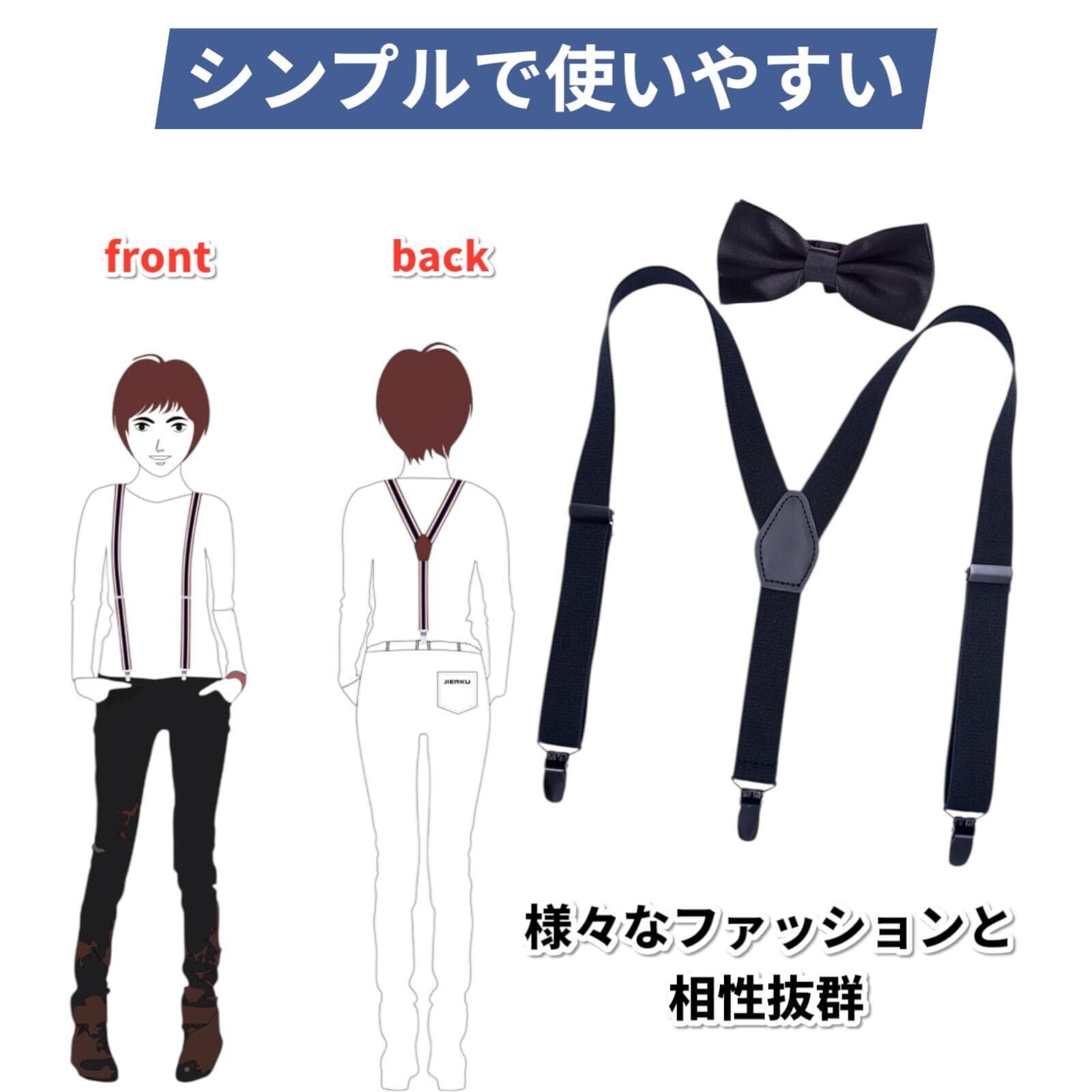 サスペンダー 作業用としても活躍する、伸縮性のあるゴム素材で快適フィット。長さ調節可能で、男女兼用、メンズ 大きいサイズにも対応。おしゃれな蝶ネクタイ付きセットは、日常からパーティーまで幅広く使える万能アクセサリーです。