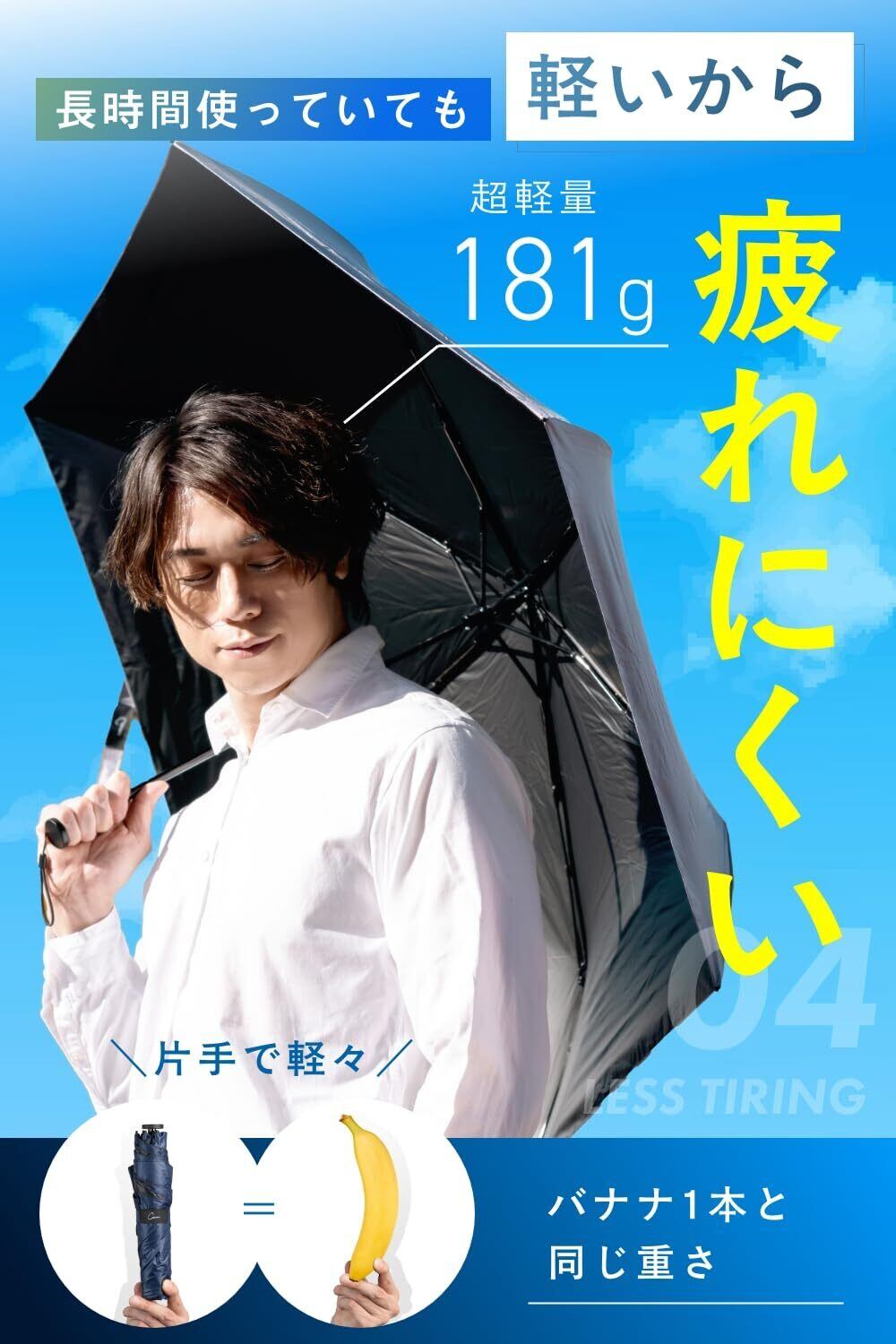 コンパクトに畳めるのに、広げれば頼もしい大きさ。耐久性と軽さのバランスを極限まで追求し、導き出した正解がこの 直径:約108cm、超軽量:約181g なのです。片手で長時間使用しても疲れにくく、大柄な方でも余裕の大きさで雨や日差しからしっかりカバー。