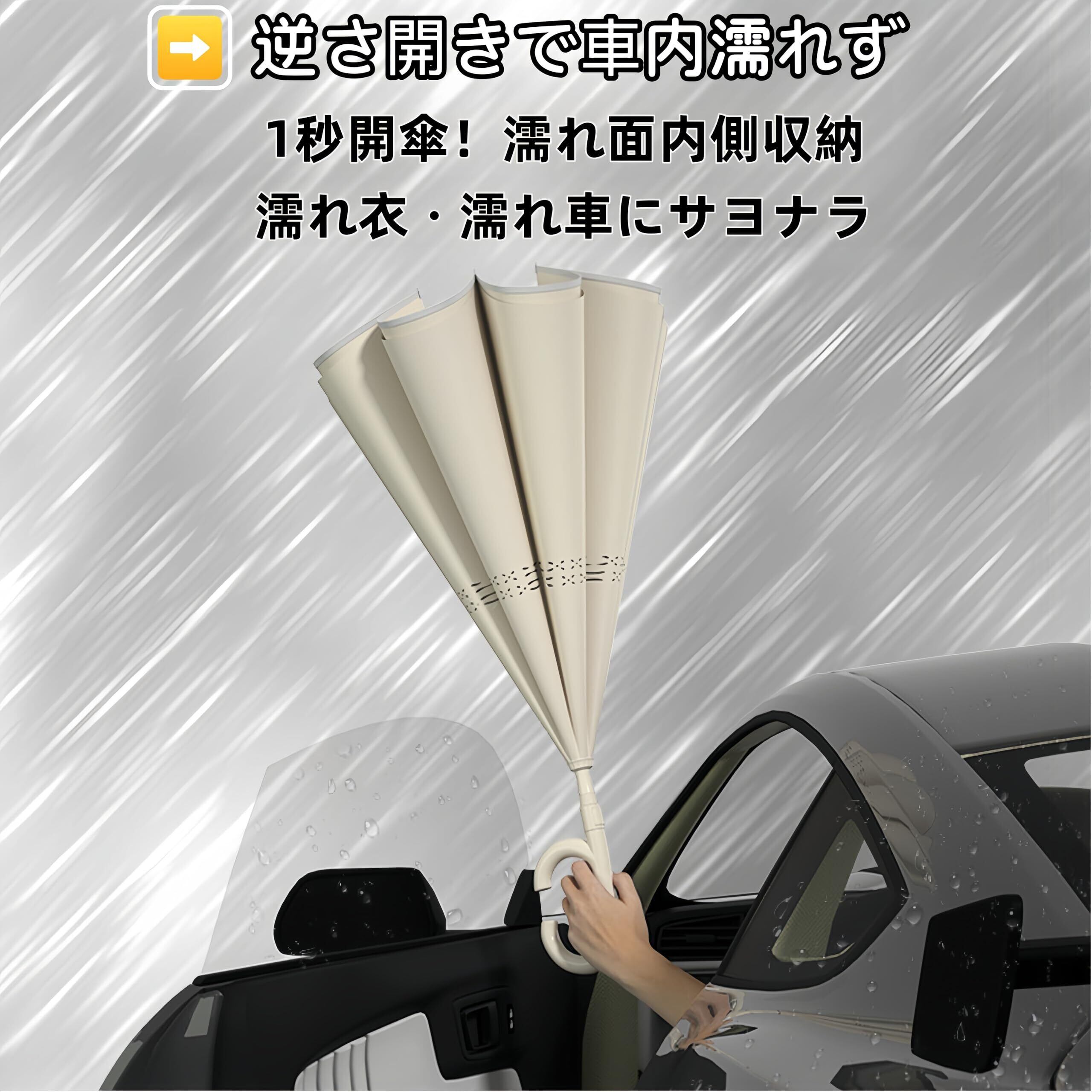 Rekucci 逆さになる傘 逆さ傘 傘 自立式 両手自由 耐風 濡れない 雨具 長柄傘 晴雨傘 車用傘 折れない傘 umbrella 台風対応 大風を防ぐ 梅雨 レディース メンズ