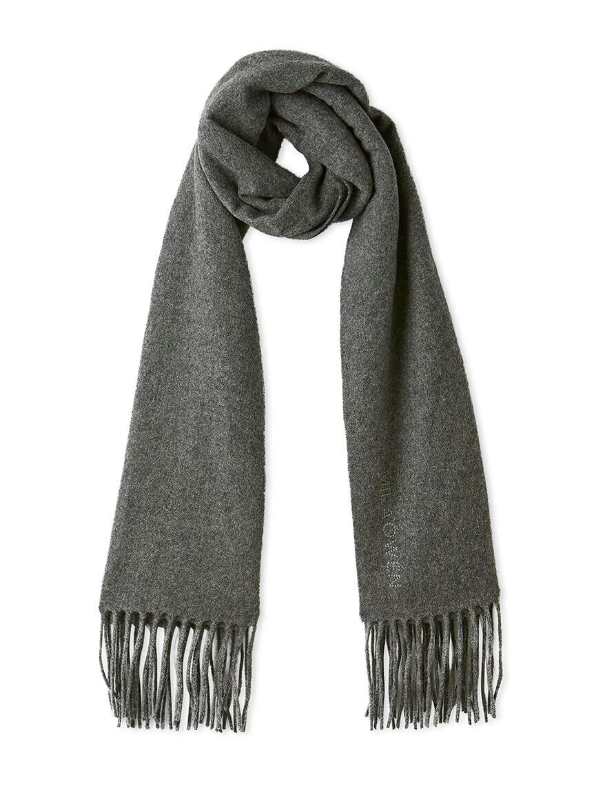 上質のウール100%の、極上の風合いが楽しめる大判ストールです。これ一枚でスタイリングを格上げしてくれる、リッチな質感が堪能できます。暖かくて肌触りがよく、首元に巻きやすいサイズ感で、適度なボリュームが出るのも特長。どんなアウターとも相性がよく、大活躍してくれます。肩掛けで軽く羽織るのもおすすめです。縦に入ったブランドロゴの刺繍もポイント。