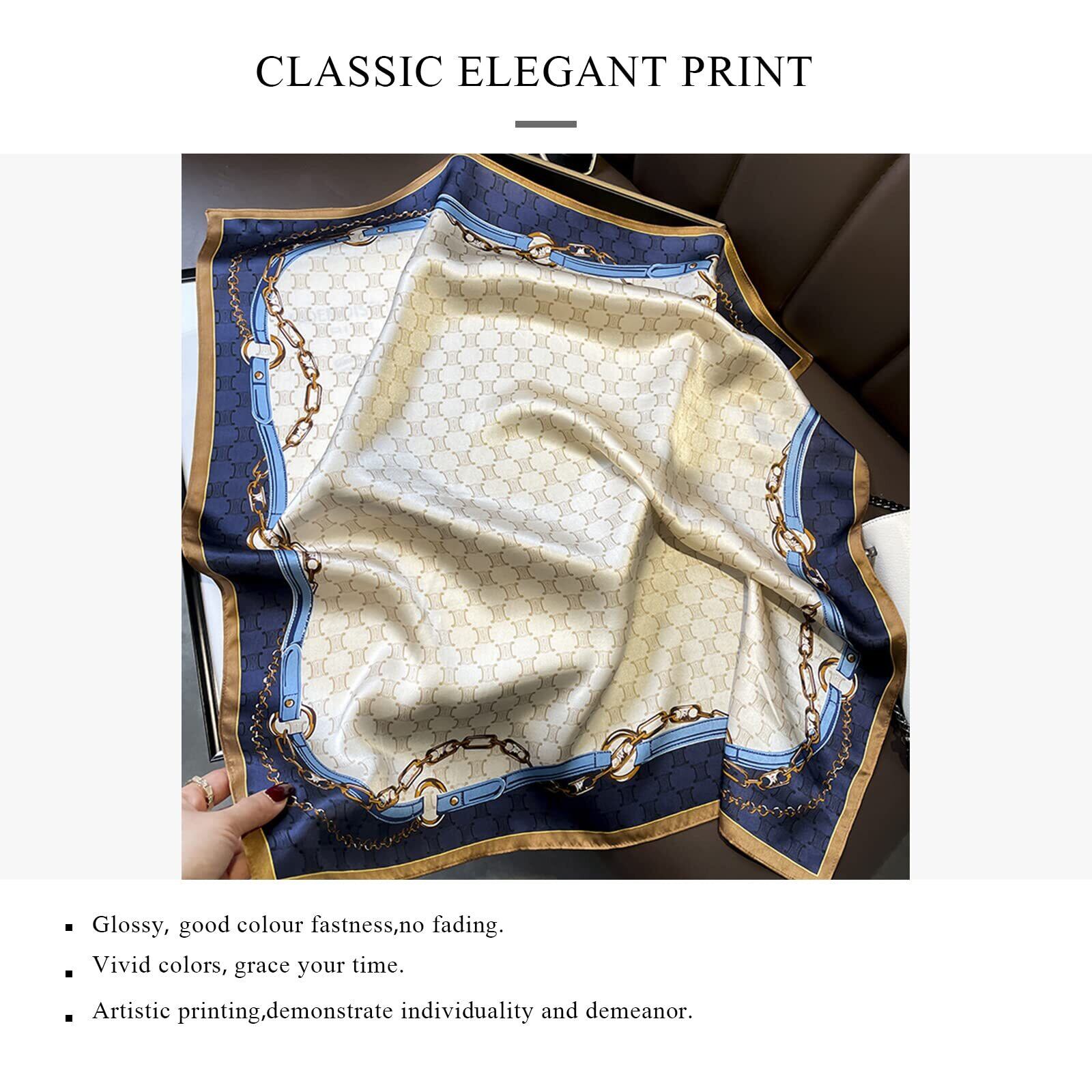 シルクスカーフ レディース スクエアスカーフ 70×70cm ヴィンテージプリント 幾何学柄 チェーン アルファベット柄 軽量 サテン ハンカチ 正方形 ネックスカーフ 多機能 装飾 ネッカチーフ バンダナ 頭飾り 髪の包帯