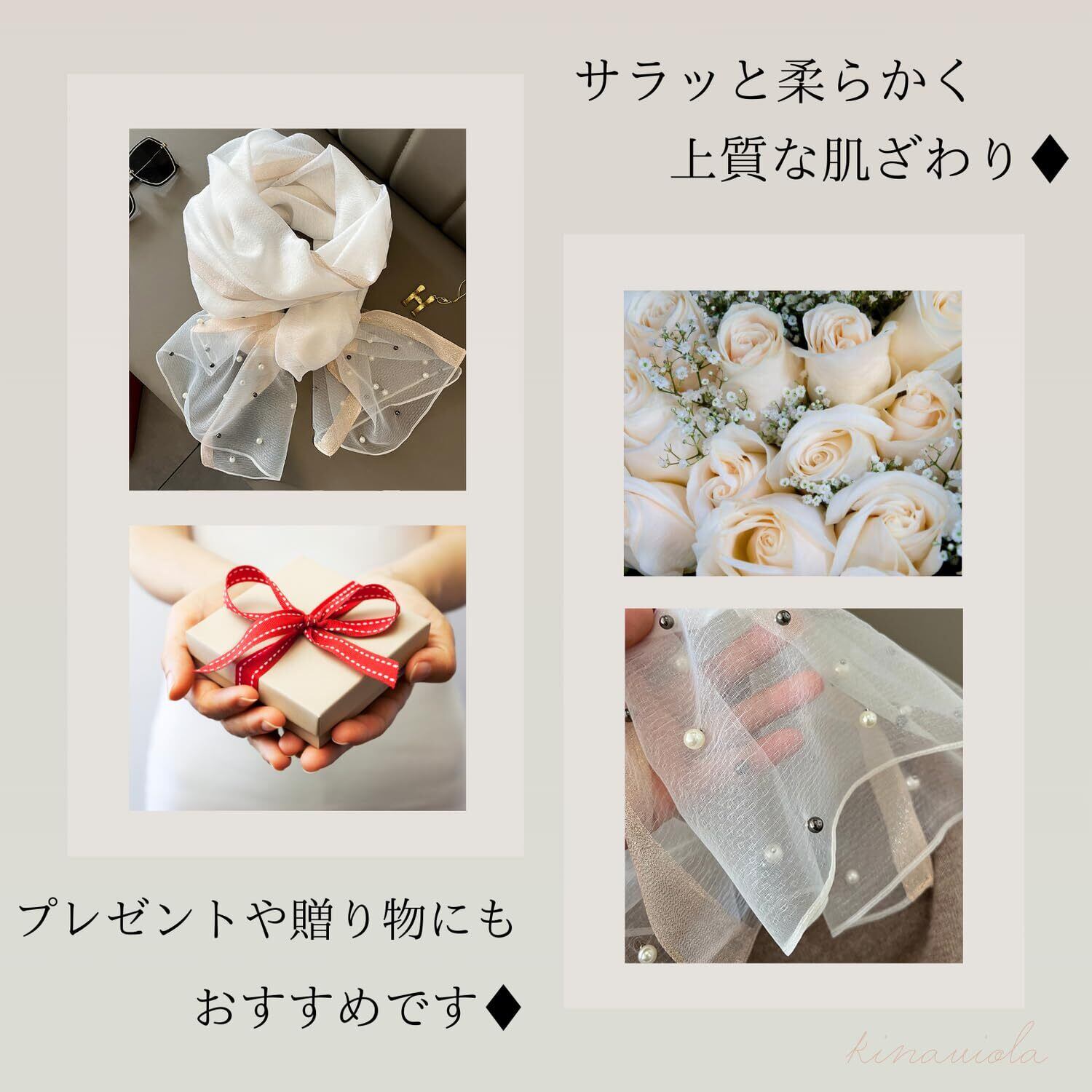 上品でキレイな、パールビーズ付きの大判ストール・スカーフ・ショール
