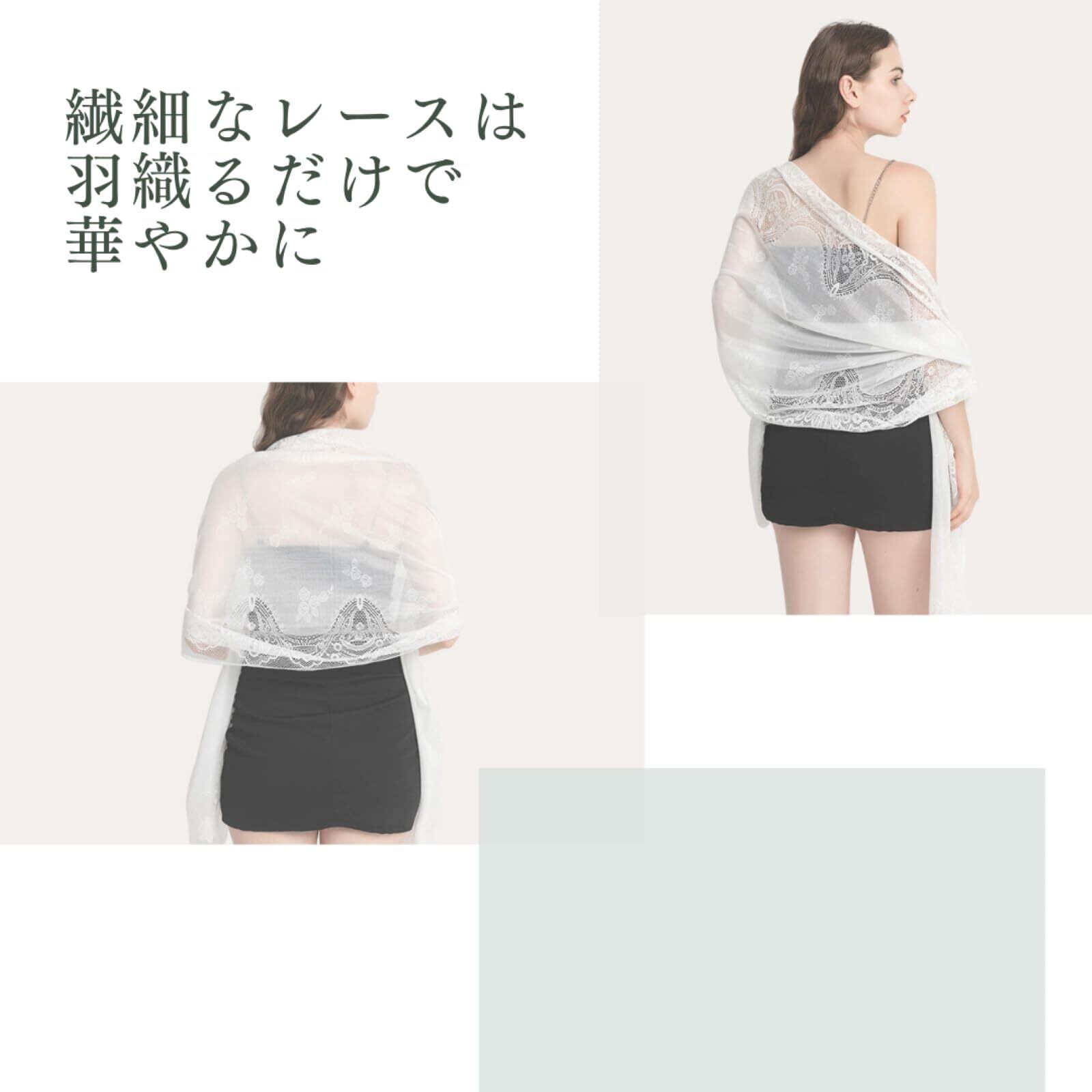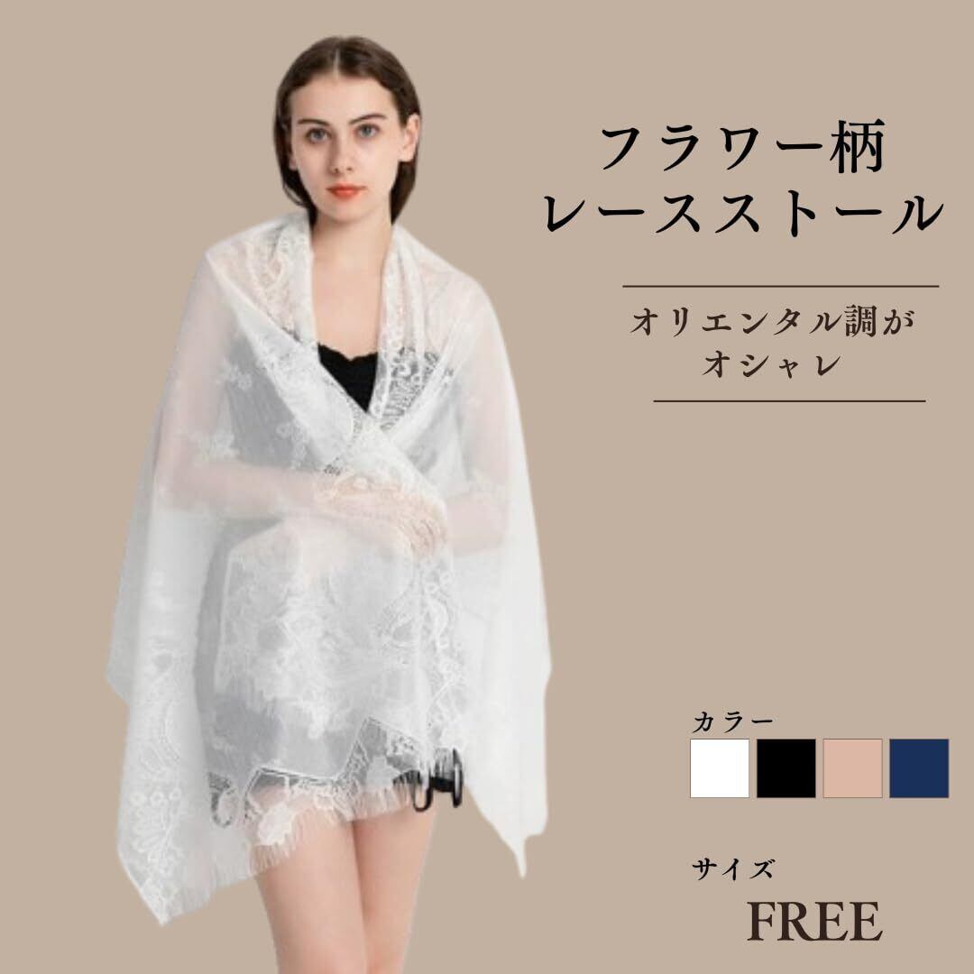 オリエンタル調のフラワー柄レースストール。ほんのり透ける繊細なレースは羽織るだけで華やかな印象に。ドレスやワンピースに羽織るだけでコーデがオシャレに見えます。
