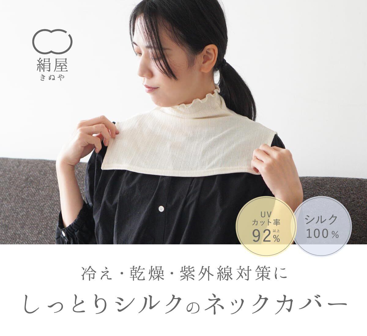 シルク100% ネックカバー UV 紫外線 付け襟 ハイネックインナー フリル ネックウォーマー タートルネック レイヤード 日本製 SO7223