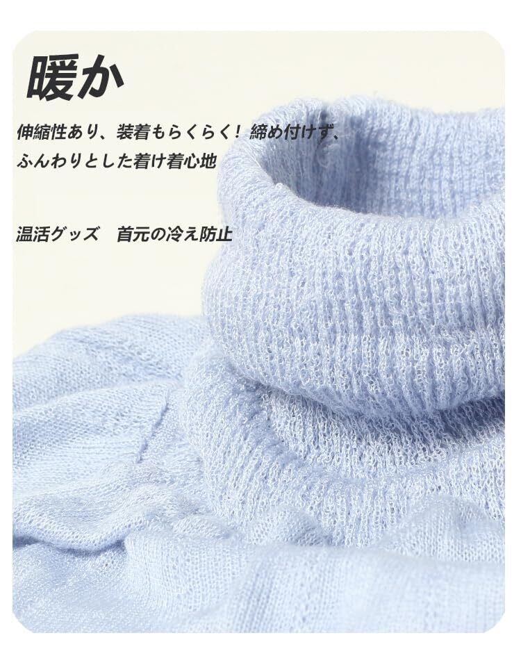 用途:冬には冬寝る時頭が寒い、夏は冷房グッズ、夏の冷房対策に、首を温めるグッズ、温活グッズ、寝る時首元が寒い、首の寒さ対策に、寝る時 あったかグッズ、首まわりのシワ隠しに、冷え対策に、日除けに、気になるデコルテの保湿ケア、外出時には胸元が開いた服やニット、カーディガンの下、コートなどインナーのように使用したりマフラーのように使用したりとコーディネートいろいろ、通気性がありムレにくいので、乾燥対策や日よけカバーとしても便利、エリの大き目な服の時に使用