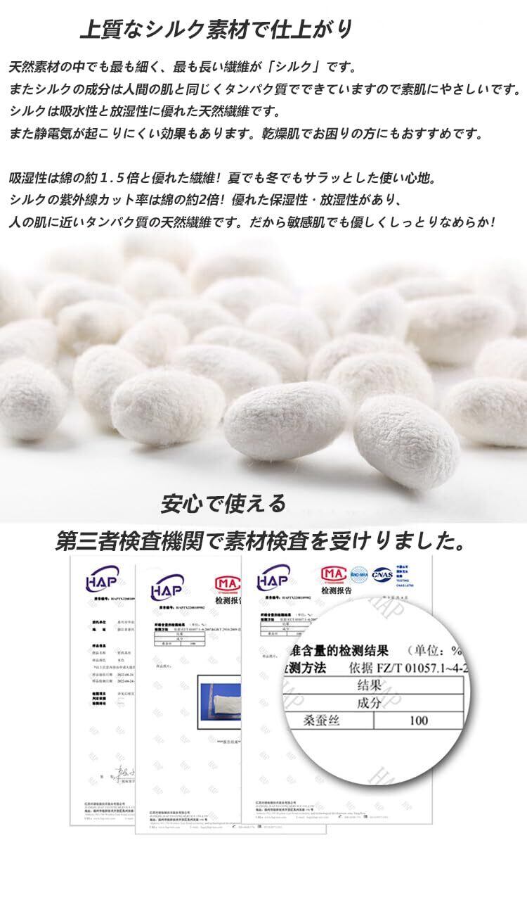 シルクは吸水性と放湿性に優れた天然繊維です。天然素材の中でも最も細く、最も長い繊維が「シルク」です。またシルクの成分は人間の肌と同じくタンパク質でできていますので素肌にやさしいです。乾燥肌、敏感肌、首元の冷えやすい方々にも安心して使えます。