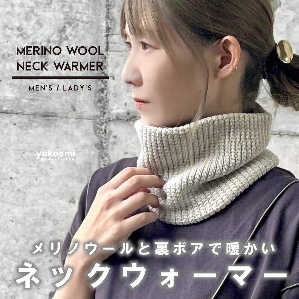 表の素材がメリノウールのネックウォーマーです。裏ボアの2重仕様なので、肌触りがよく首元を優しく温めます。