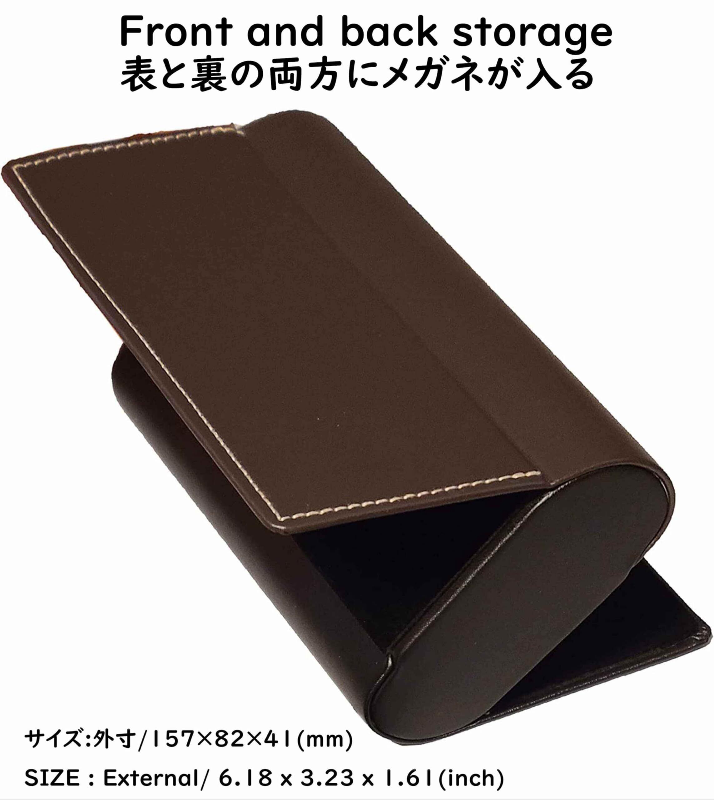 2本のメガネを1つのケースに収納できるすぐれもの。対角線に仕切りが入り大きさもスリムでありながら 2本入る優れた収納力。 限定 フェイクレザーのブラック×ブラウン 高級感あるステッチがおしゃれ。