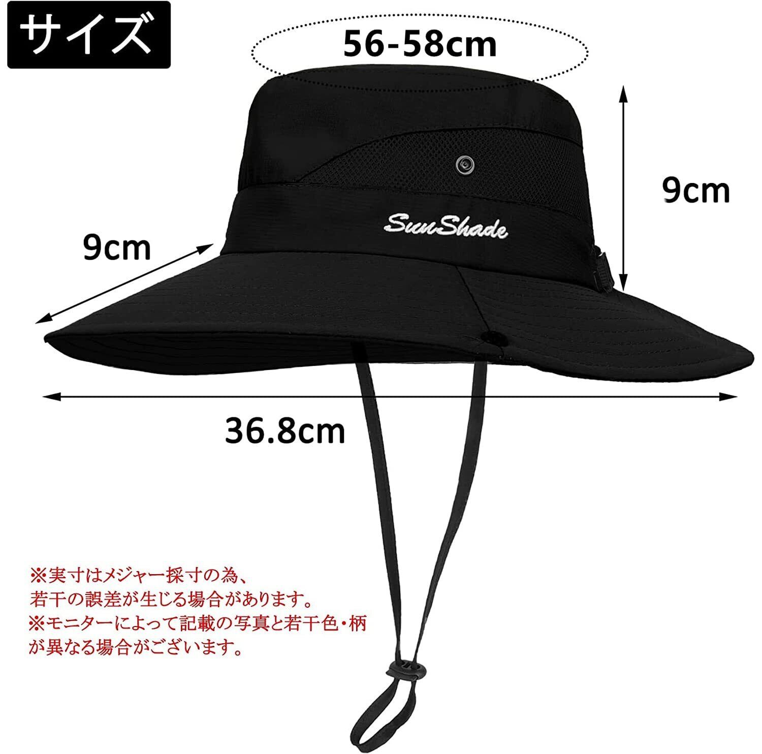 レディース 帽子 日よけ帽子 UVカット帽子 サファリハット つば広ハット あご紐 調節可能 紫外線対策 通気性 吸水速乾 夏 秋 アウトドア 旅行用 釣り 登山 ウォーキング 9002