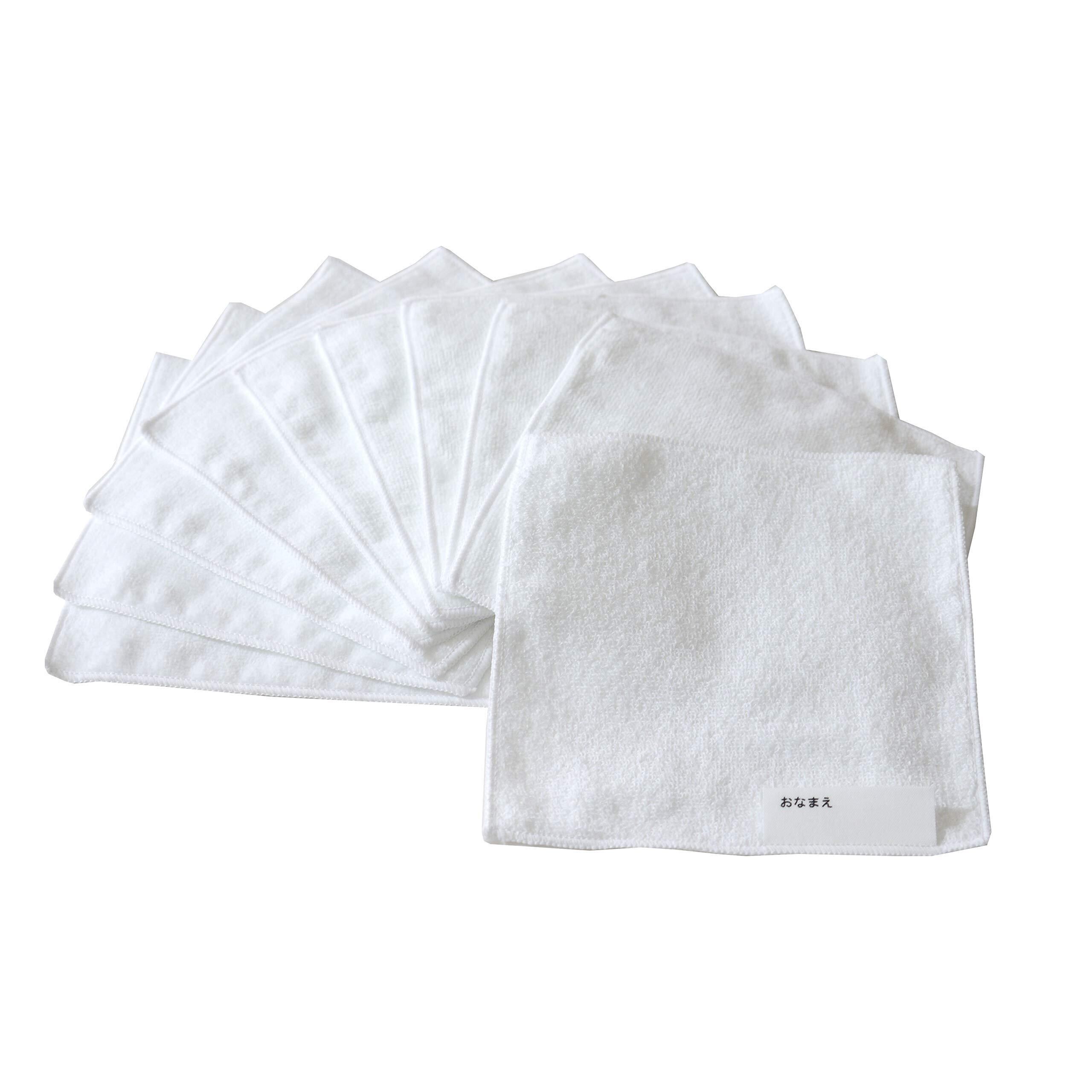 ハンカチタオル13cmサイズ 10枚組 (おなまえネームタグ付き)ホワイト