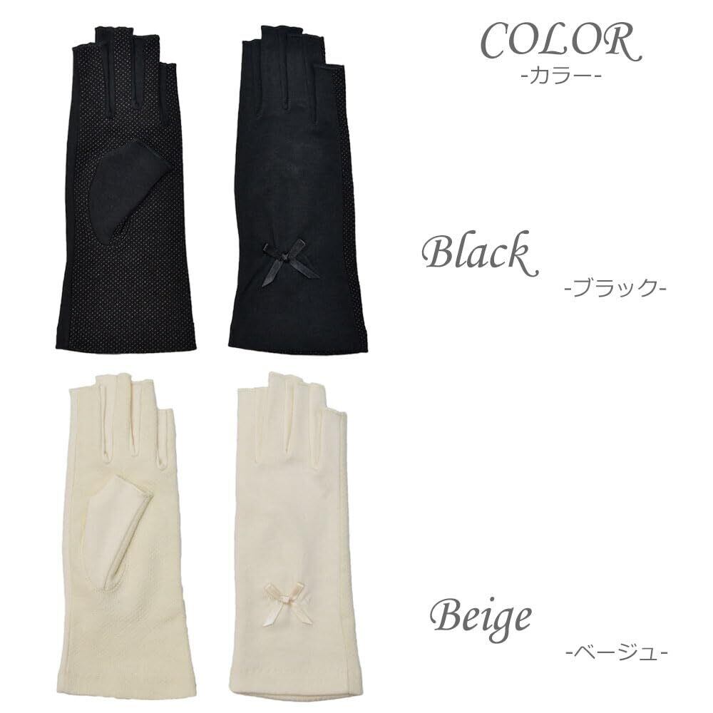 UV手袋 指なし 指切り アームカバー コットン 綿 UVカット 紫外線対策 滑り止め付き リボン付き 日焼け防止 ブラック ベージュ フリーサイズ