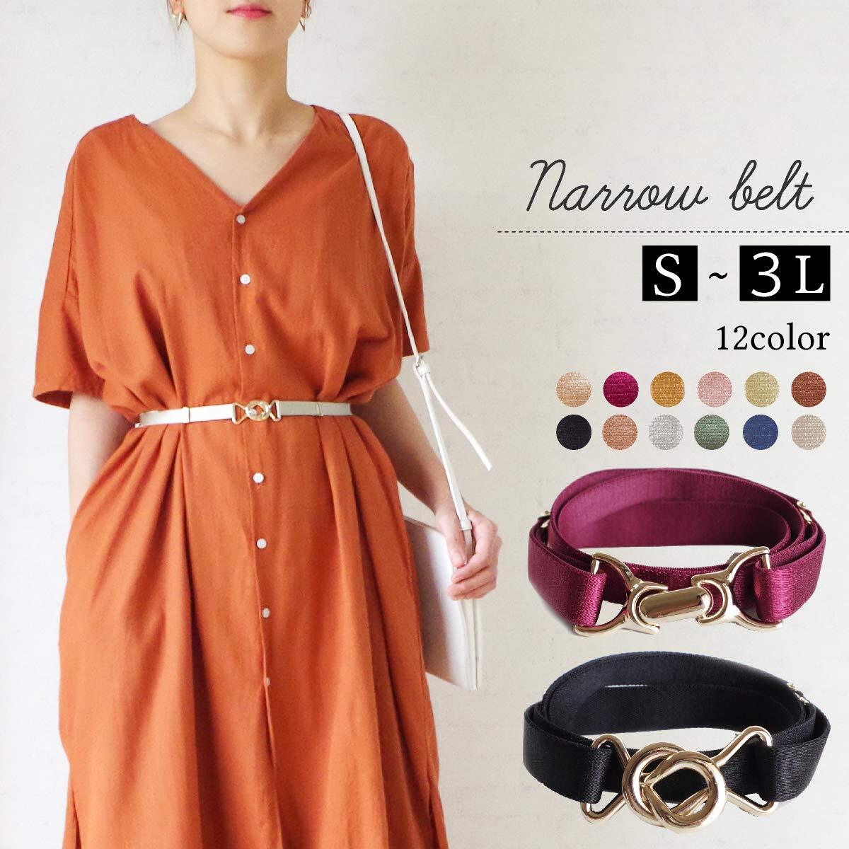 【特価商品】ビットベルト ゴム ベルト レディース 15mm幅 サテン ウェーブ 細め