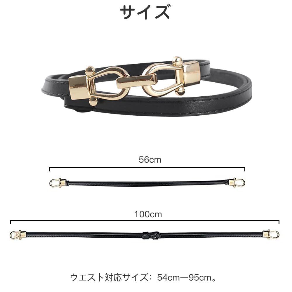 女性らしいデザイン:細身のレディースベルトはゴールドの光沢あるバックルを採用し、優雅で高級感溢れるデザインで女性らしさを引き立てます。