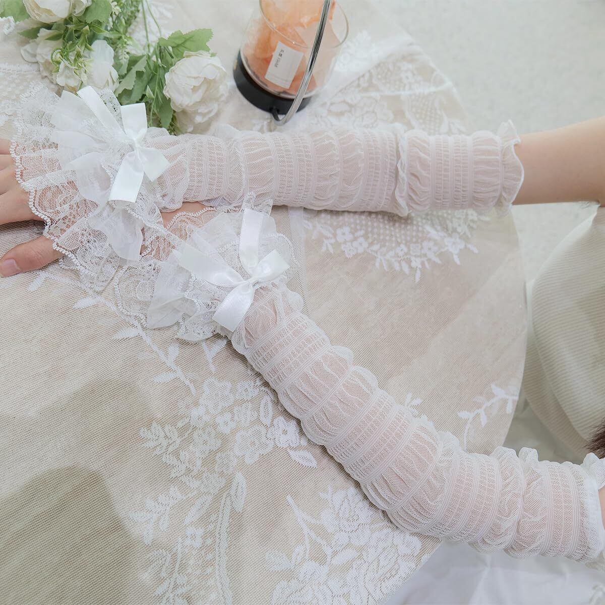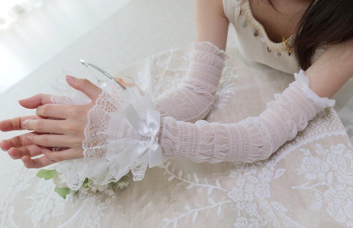 レースアームスリーブレディースロリータアームカバー可愛いフレアスリーブY2K風日焼け止めアームカリストウォーマーカバーおしゃれ地雷系伸縮性滑り止め UVカット