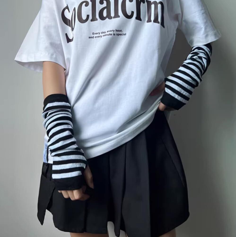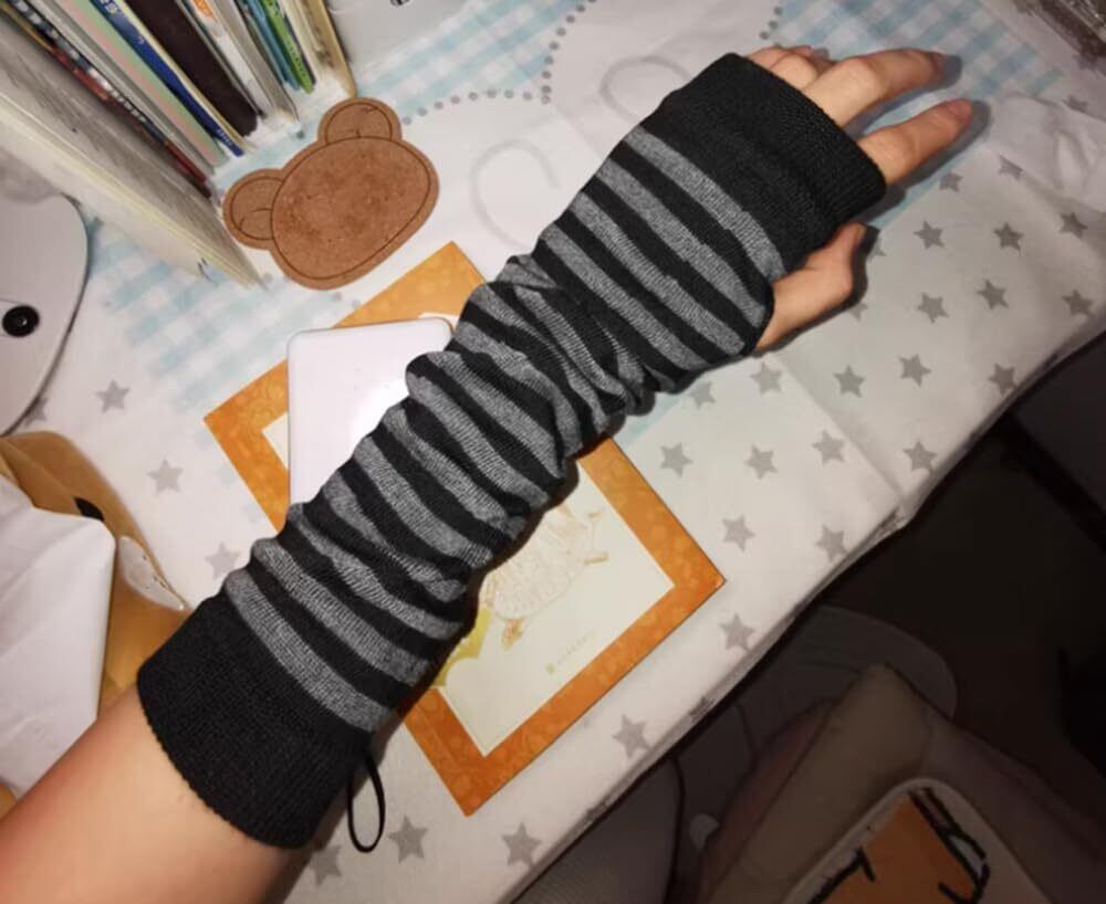 アームウォーマー レディース 可愛い 地雷系 ボーダーアームカバー ジュニア男女兼用