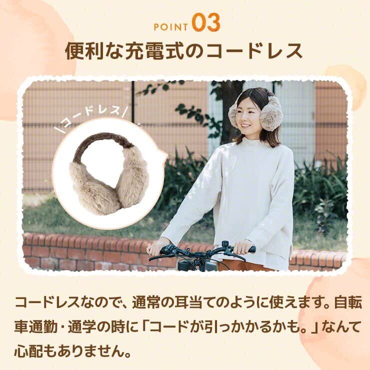 すぐぬっく イヤー 耳当て 防寒 電熱 イヤーマフ イヤーウォーマー 耳あて 45度 50度 コードレス 充電 サイズ調整 自動停止機能 ファー レディース