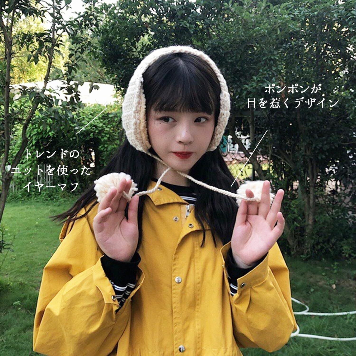 【在庫セール】耳当て イヤーマフ 耳あて レディース かわいい おしゃれ ふわふわ ニット ポンポン 紐付き クロシェ編み 防寒 イヤーマフラー イヤーウォーマー フェイクファー ボア 耳 アクセサリー オシャレ トレンド 大人 韓国