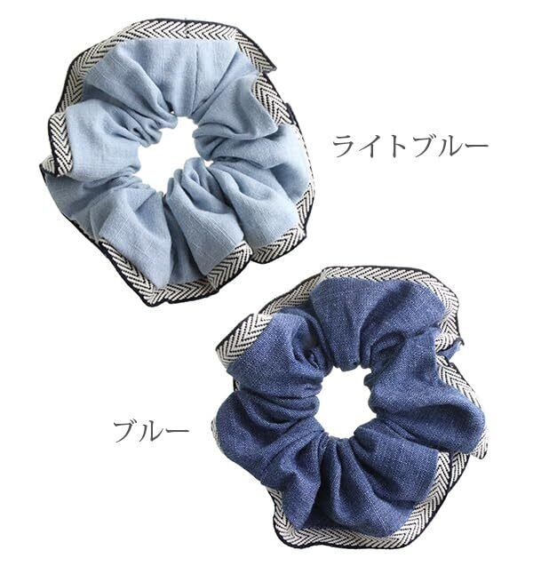 【2022最新】VINGTAINE パイピング デニム風 シュシュ トライバル柄 ボリューム フリル デイリー ヘアアクセ ヘアアクセサリー HS-115