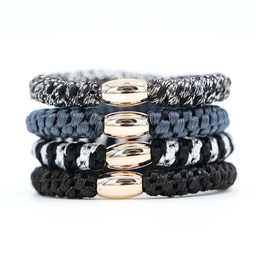 【商品仕様&セット内容】 4色×各1本の4本セット、または4色×各2本の8本セットからお選びいただけます。プレーンタイプとゴールドタイプの2種類を展開し、全32パターンのバリエーションをご用意。シーンやファッションに合わせて使い分けできる“魅せゴム”は、ギフトにもぴったりです。
