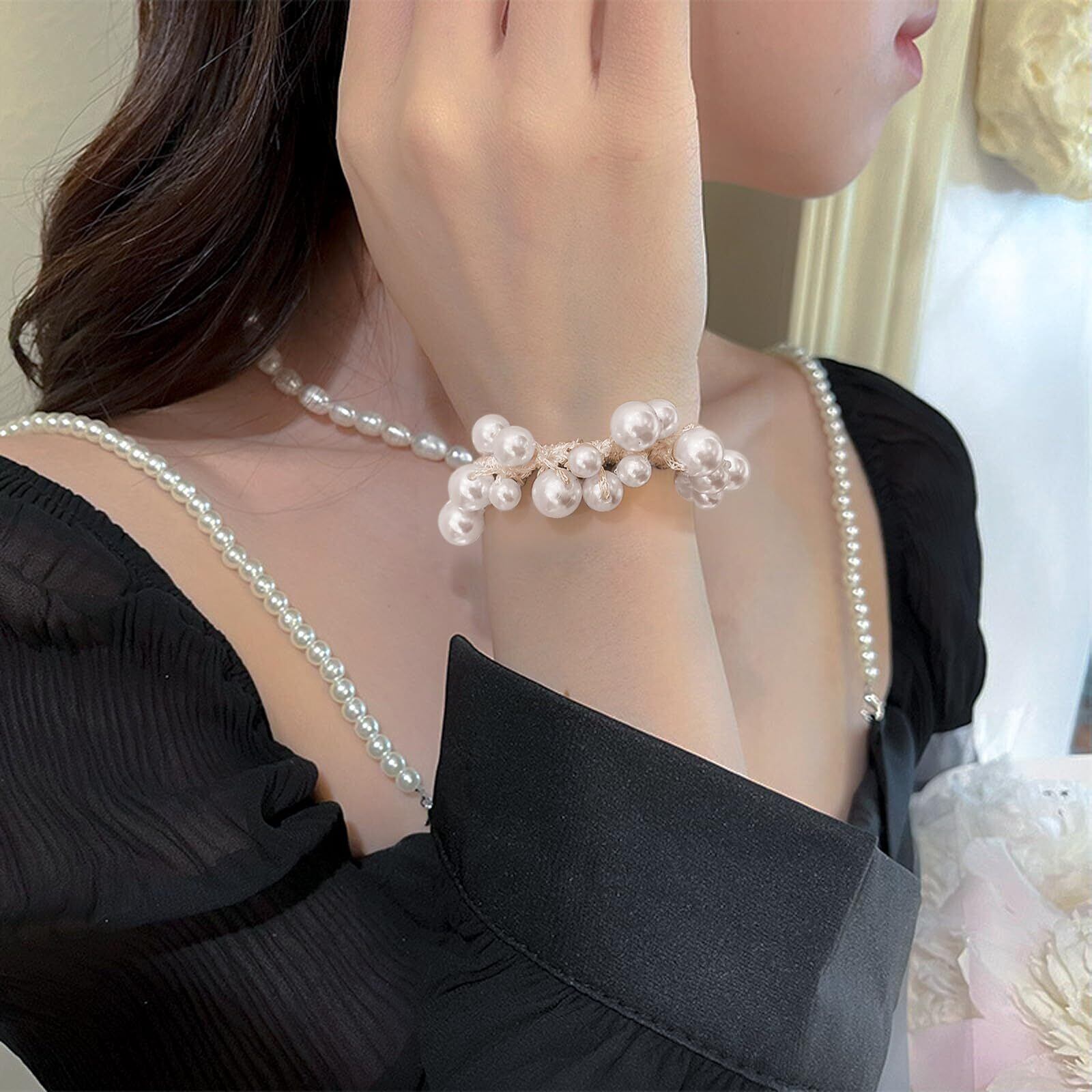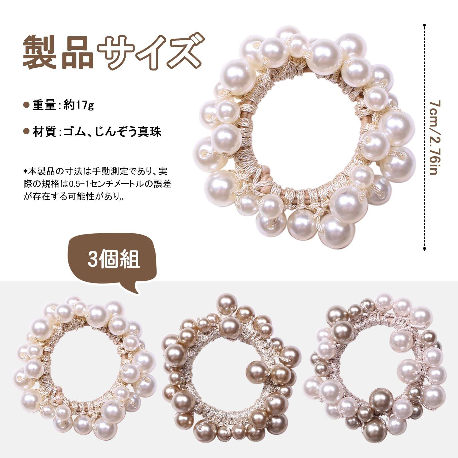 【新着商品】ヘアゴム パール おしゃれ ヘアアクセサリー 人気 ビーズ 髪飾り 跡がつかない 髪留め かわいい シンプル 髪ゴム 大人 女の子 オフィス 入学式 結婚式 通勤 韓国風 パーティー プレゼント(3個入り)