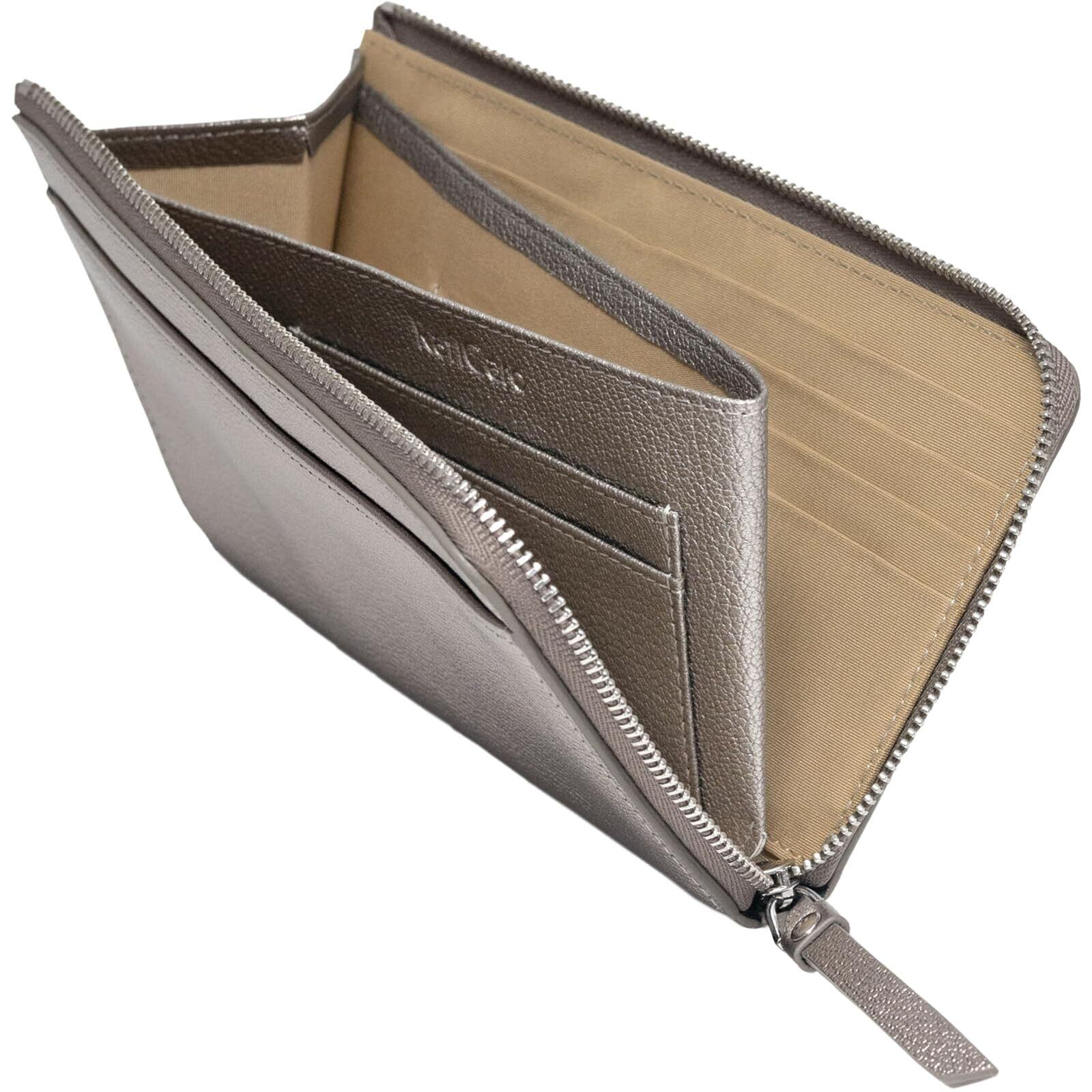 【特価セール】小さい長財布 レディース 短い 大容量 23ポケット お札を折らない コンパクト 約18cm 薄い スリム L字ファスナー メンズ YKKファスナー マチ付き小銭入れ ダークシルバー