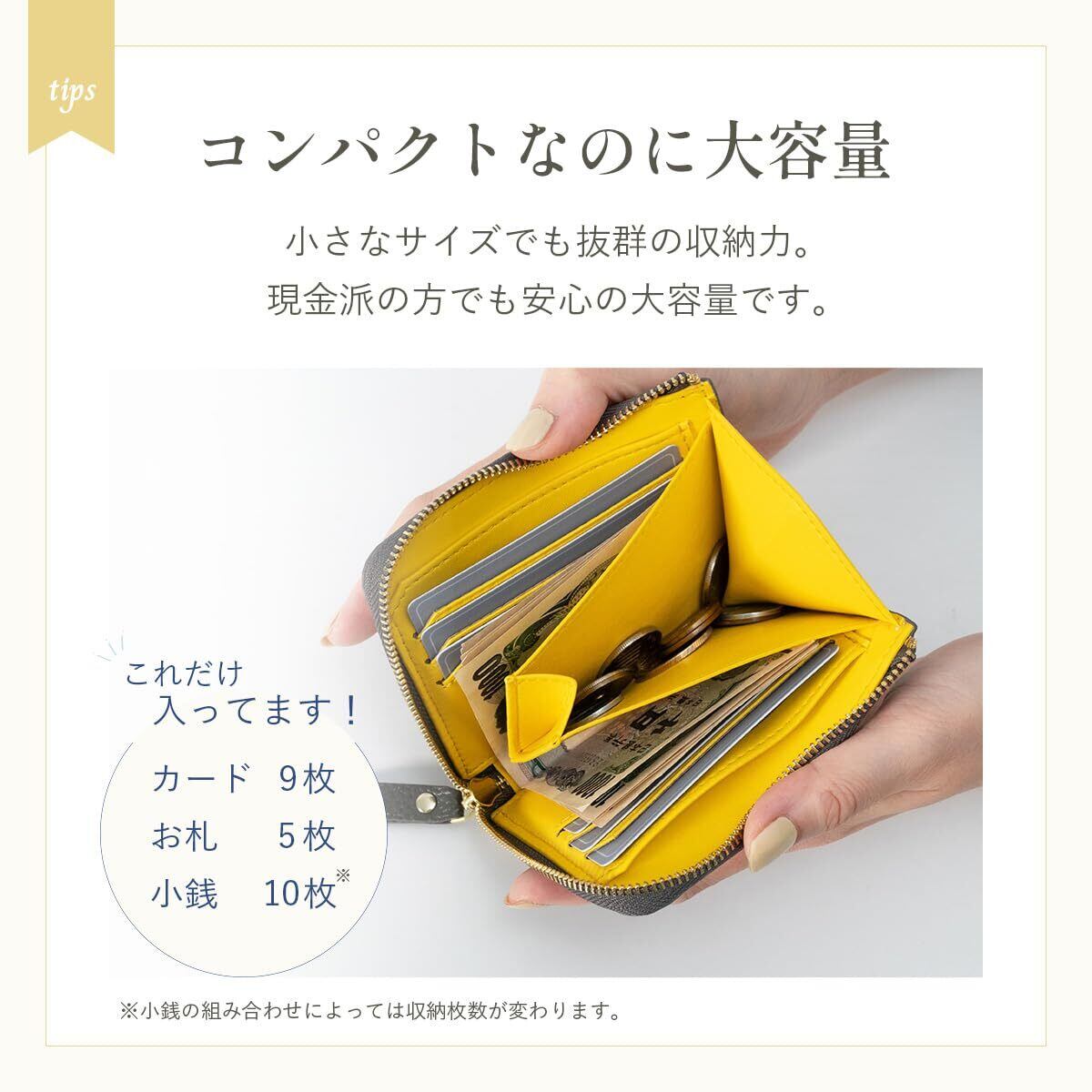 【小さくても容量しっかり】 充実のカードポケットにマチ付きの小銭入れ、フリースペースにはお札も折らずに入ります。L字ファスナー+片側マチで大きく開き、使いやすさにもこだわりました。ファスナーを閉めると薄くスッキリしたフォルム。小さめバッグやポケットにも収まるサイズ感です。