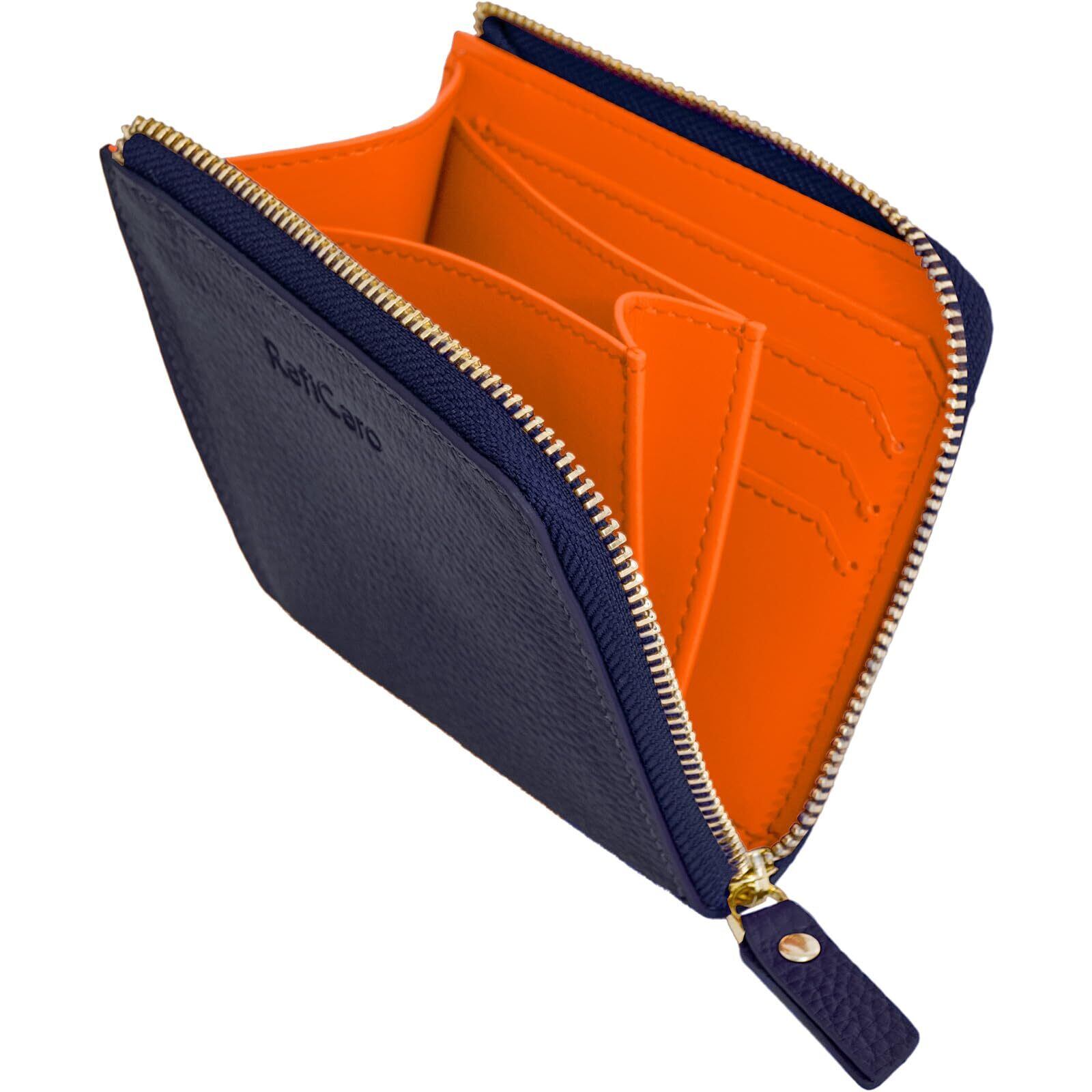 ミニ財布 レディース お札が折れない 大容量 カード入れ 小銭入れ 小さい 財布 L字ファスナー 薄型 コンパクト ネイビー/オレンジ