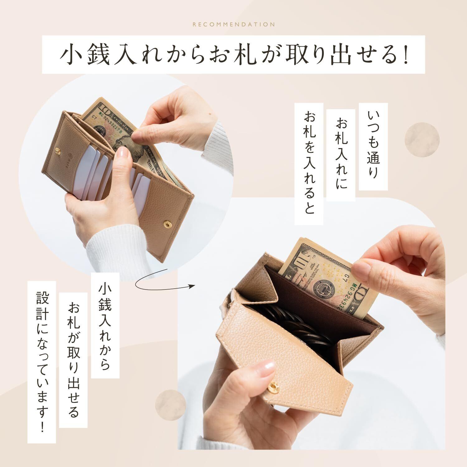 【スムーズな取り出しで快適ライフ!小銭入れからお札が取り出せるデザイン】 小銭入れからお札を直接取り出せることで、財布を開ける手間が省け、スムーズに支払いができます。 特に急いでいる時や混雑した場所での支払いに便利です。