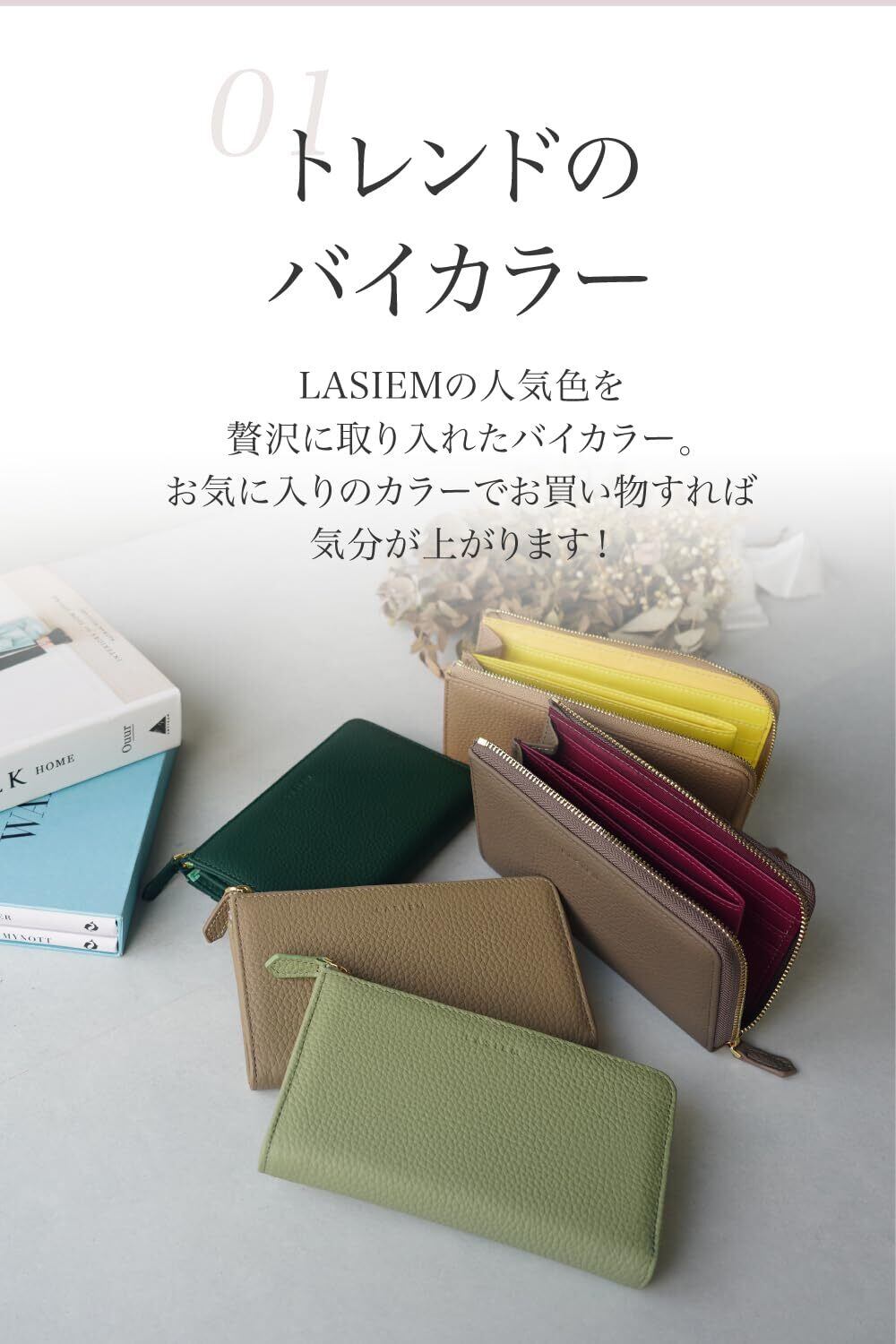 【在庫処分】LASIEM(ラシエム) 長財布レディース 財布 小さい長財布 本革 コンパクト L字ファスナー シンプル ボックス付き エクルベージュ×ピンク