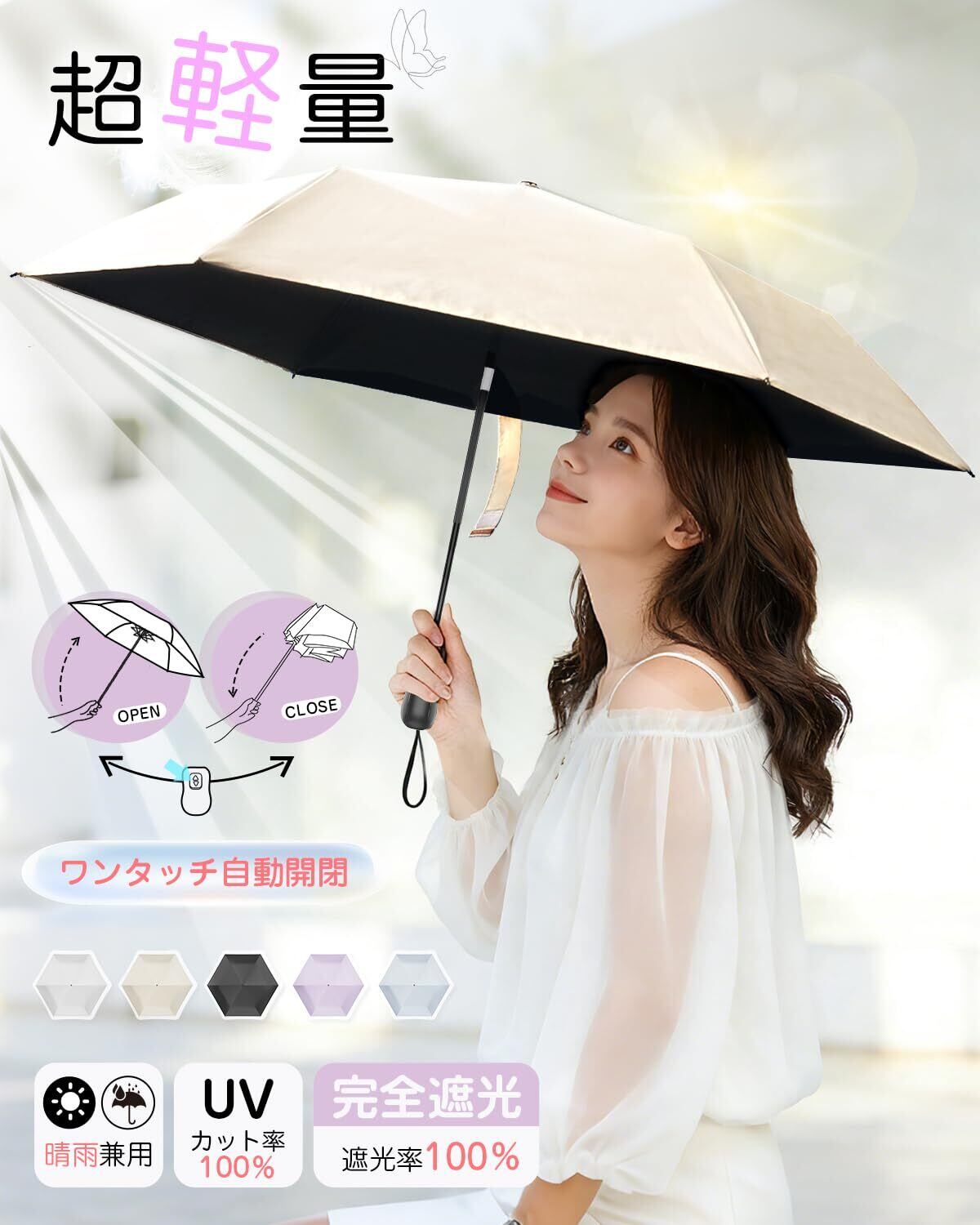 日傘 超軽量 最軽量約185g 完全遮光 UVカット率100% 折りたたみ日傘 紫外線遮断 遮熱 UPF50+ ワンタッチ自動開閉 シミ予防 美肌対策 紫外線対策 暑さ対策 熱中症対策 折り畳み日傘 耐風撥水 晴雨兼用 携帯便利 高級質感 質感優れ 1年間の レディース メンズ 男女兼用 通勤 通学 夏用 コンパクト 母の日 父の日 プレゼント