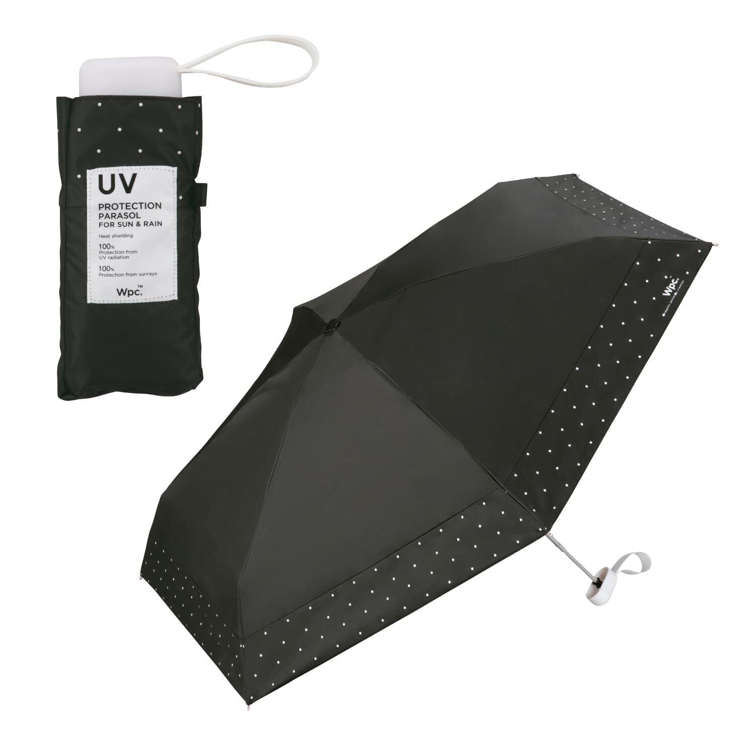 Wpc. 日傘 遮光切り継ぎタイニー (限定色) ドットブラック ≪遮光率100%/UVカット率100%/・UPF50+/遮熱/晴雨兼用≫ 折りたたみ傘 軽量 801-16423-WS