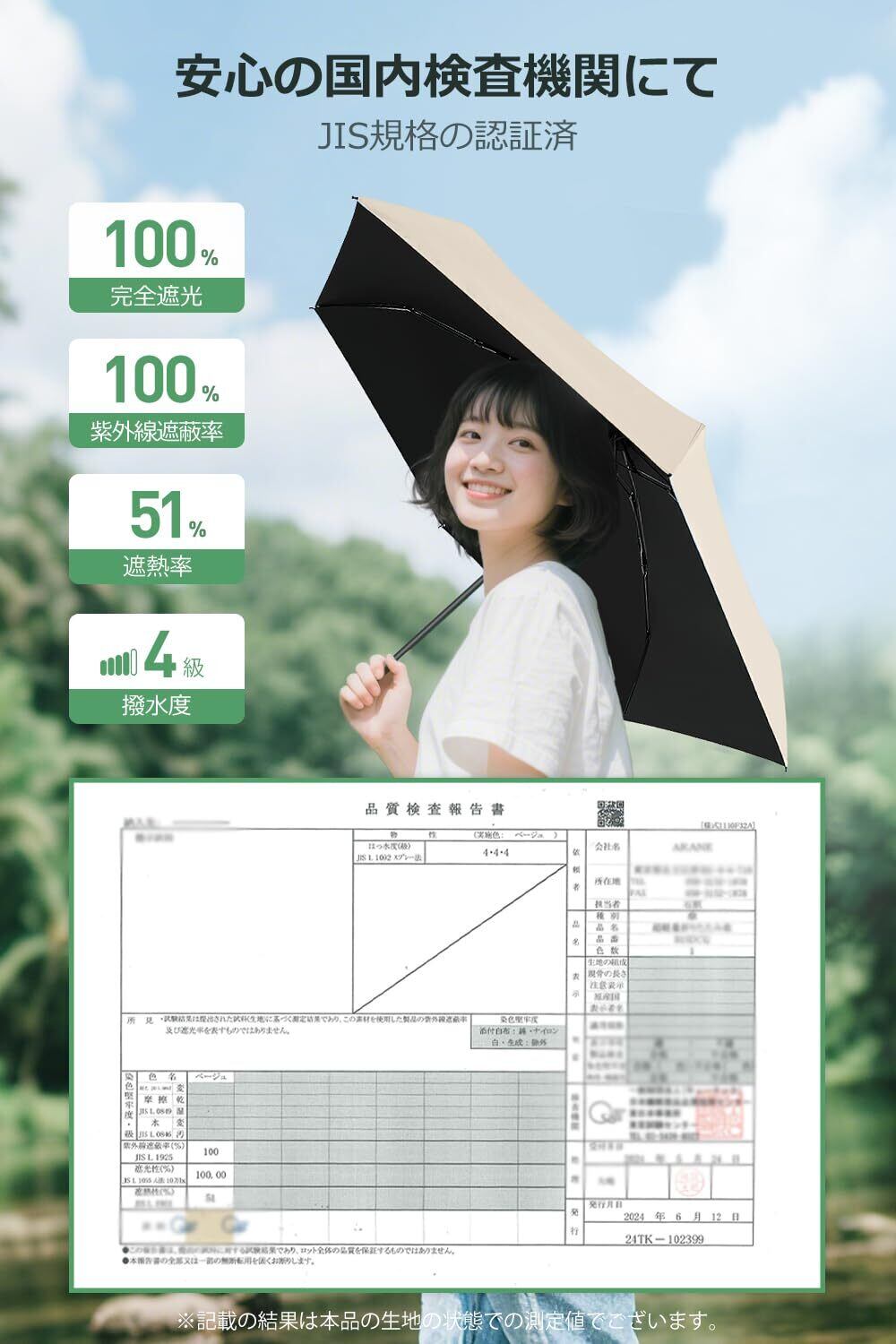 【100%uvカット*100%遮光日傘】高密度傘生地と厚い黒ノリコーティングを採用して、UPF50+、UVカット率100%、完全遮光、効果的に日焼け止めすることができます。日焼けを防ぐために必要なUVカットの性能を兼ね揃えた、紫外線対策にはピッタリの折りたたみ日傘です。暑い夏の熱中症対策にもぜひおすすめ!