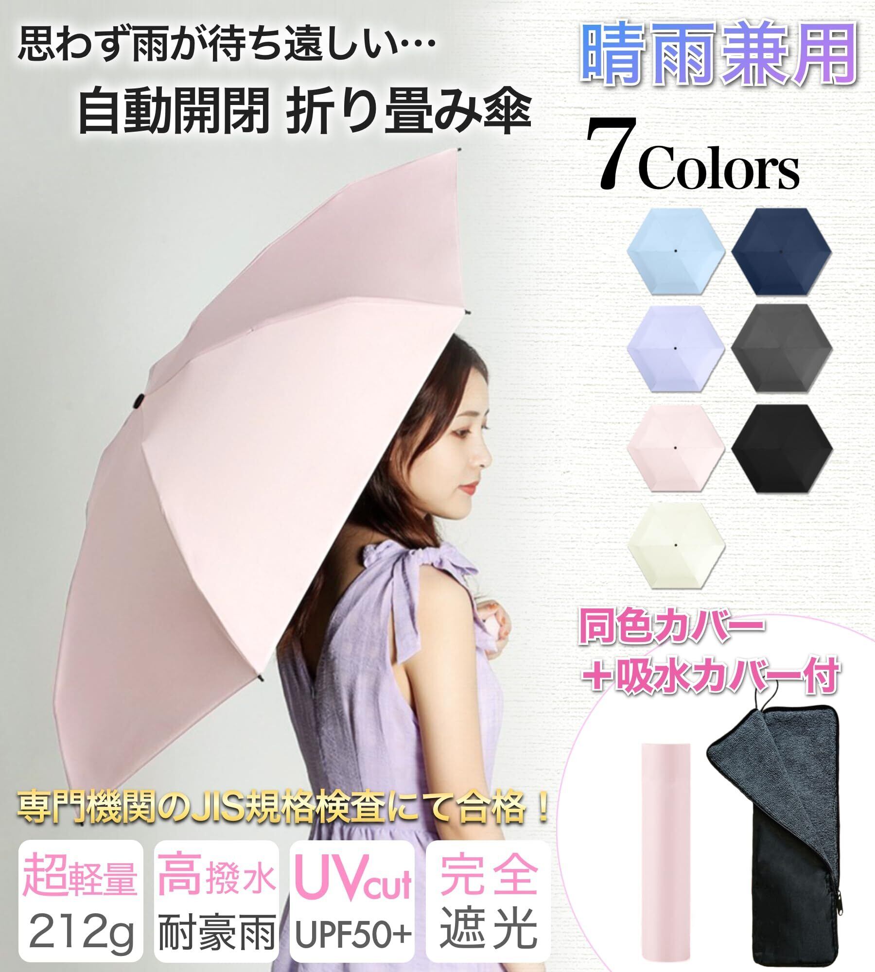お得な吸水カバー付き 日傘 折りたたみ傘 ワンタッチ自動開閉 傘カバー 212g 晴雨兼用 折りたたみ傘 丈夫 軽量 折り畳み傘 女性 コンパクト 傘 折畳傘 レディース メンズ 日傘 uvカット 100 遮光 折り畳み GDEEL
