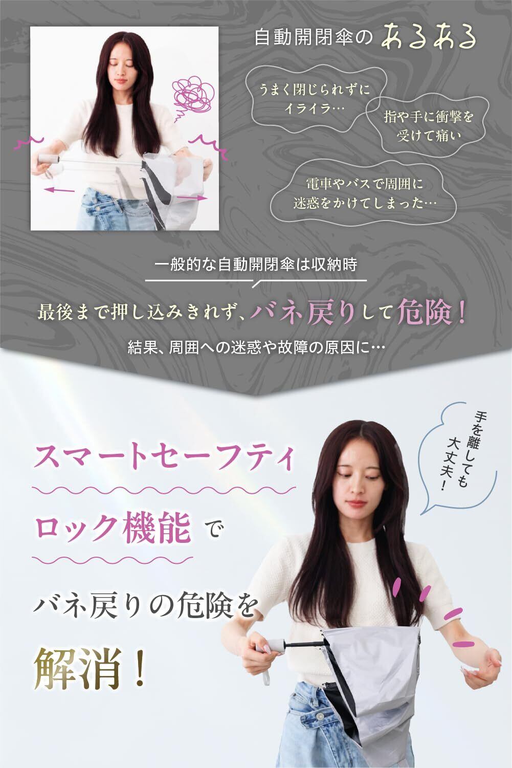 【スマートセーフティロック機能搭載!】収納時に途中で手を離しても“戻らない”。バネの跳ね返りを防止し、力の弱い方でもスムーズに収納できます。