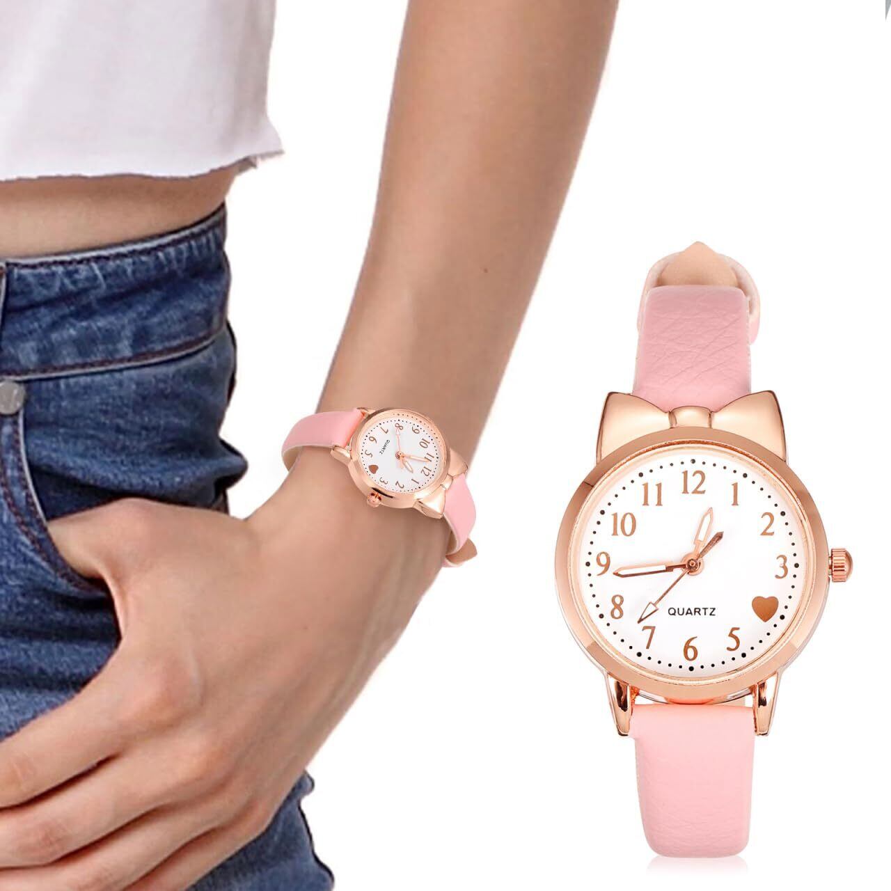 POPETPOP ガールズウォッチ&ボーイズウォッチ スポーツ&学生腕時計 発光 防水 アナログ ファッション 可愛い 学生 女の子 ピンク