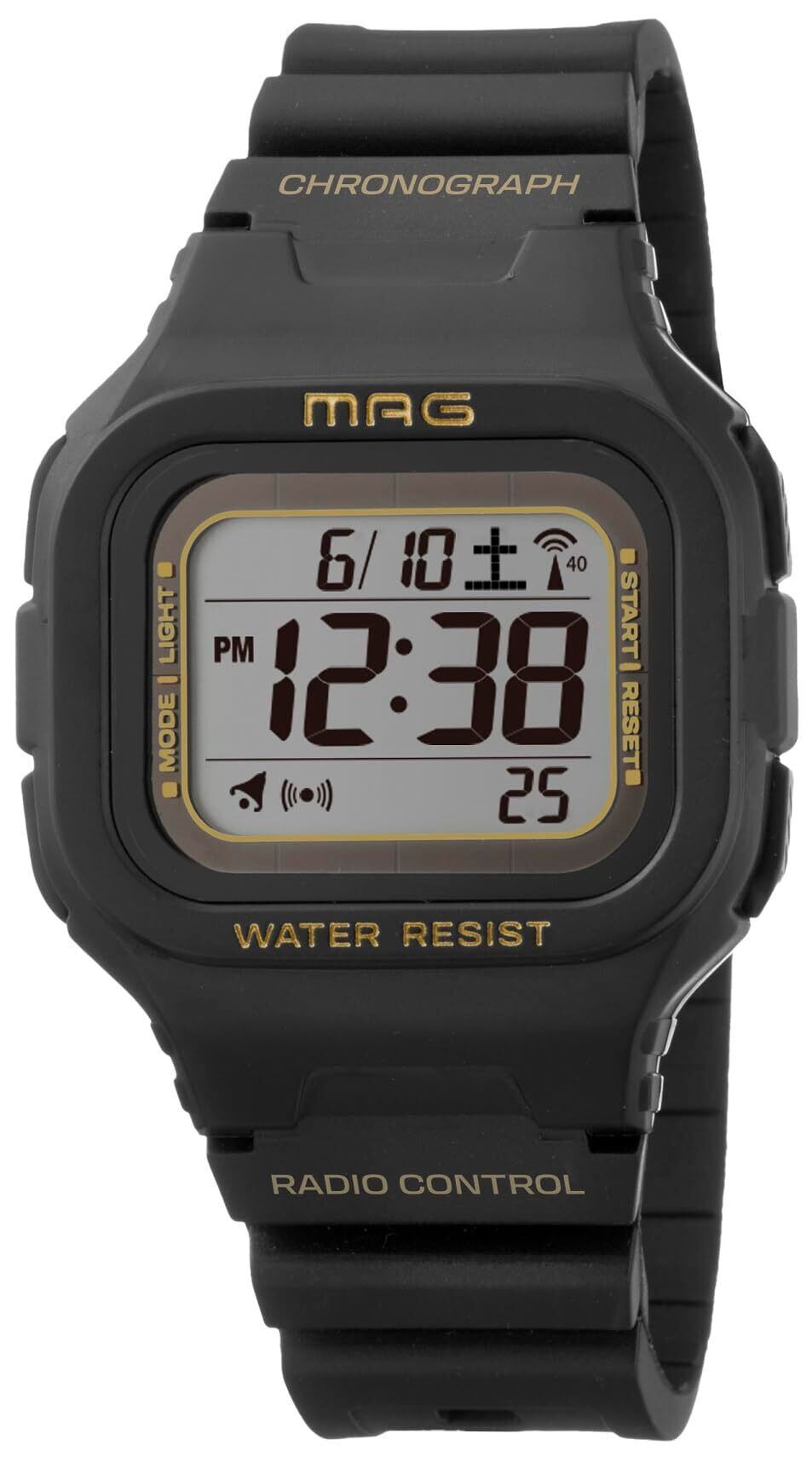 MAG(マグ) 腕時計 デジタル 電波時計 ソーラー デュアルパワー 防水 10気圧 ウレタンベルト 少し小さめ 子供 メンズ レディース ブラック MW-550 BK2 ノア精密