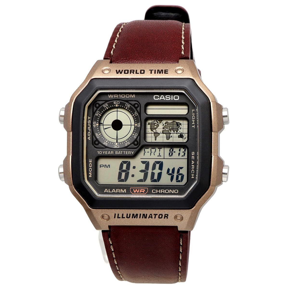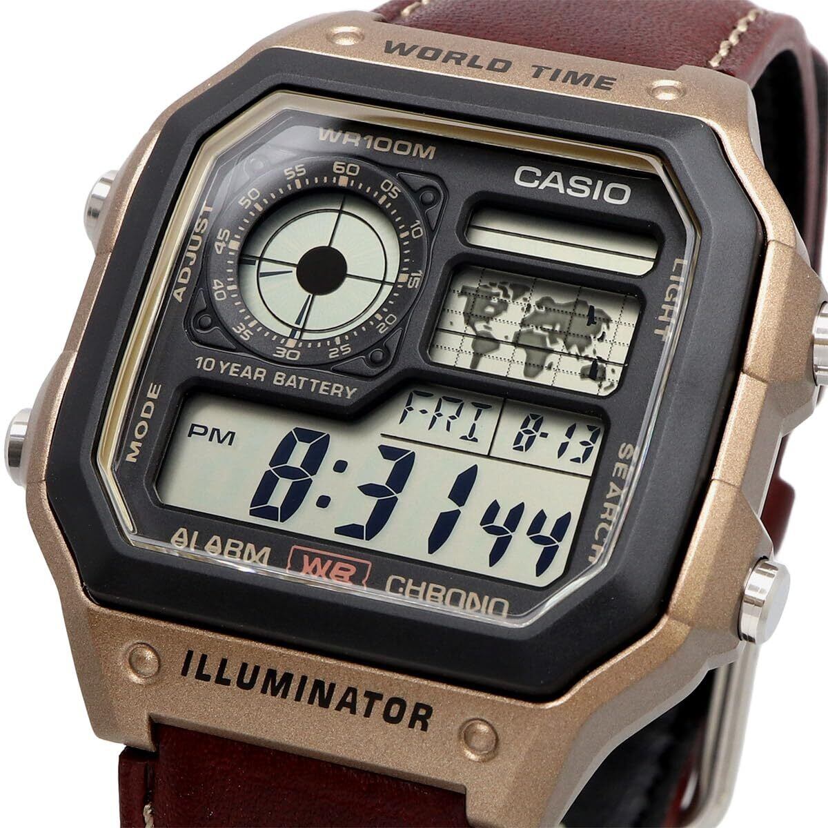 CASIO ワールドタイム World Time デジタル 腕時計 AE-1200WHL-5AV メタリックブラウン ブラウンレザーバンド 海外モデル