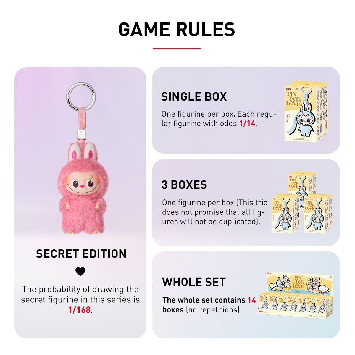 【商品詳細】ブランド:POP MART 入数:1アソートボックス=14ピース入り 種類数:ノーマル14種+シークレット1種 商品サイズ:約6×5×10.5cm 素材:ポリエステル繊維/PVC/亜鉛合金