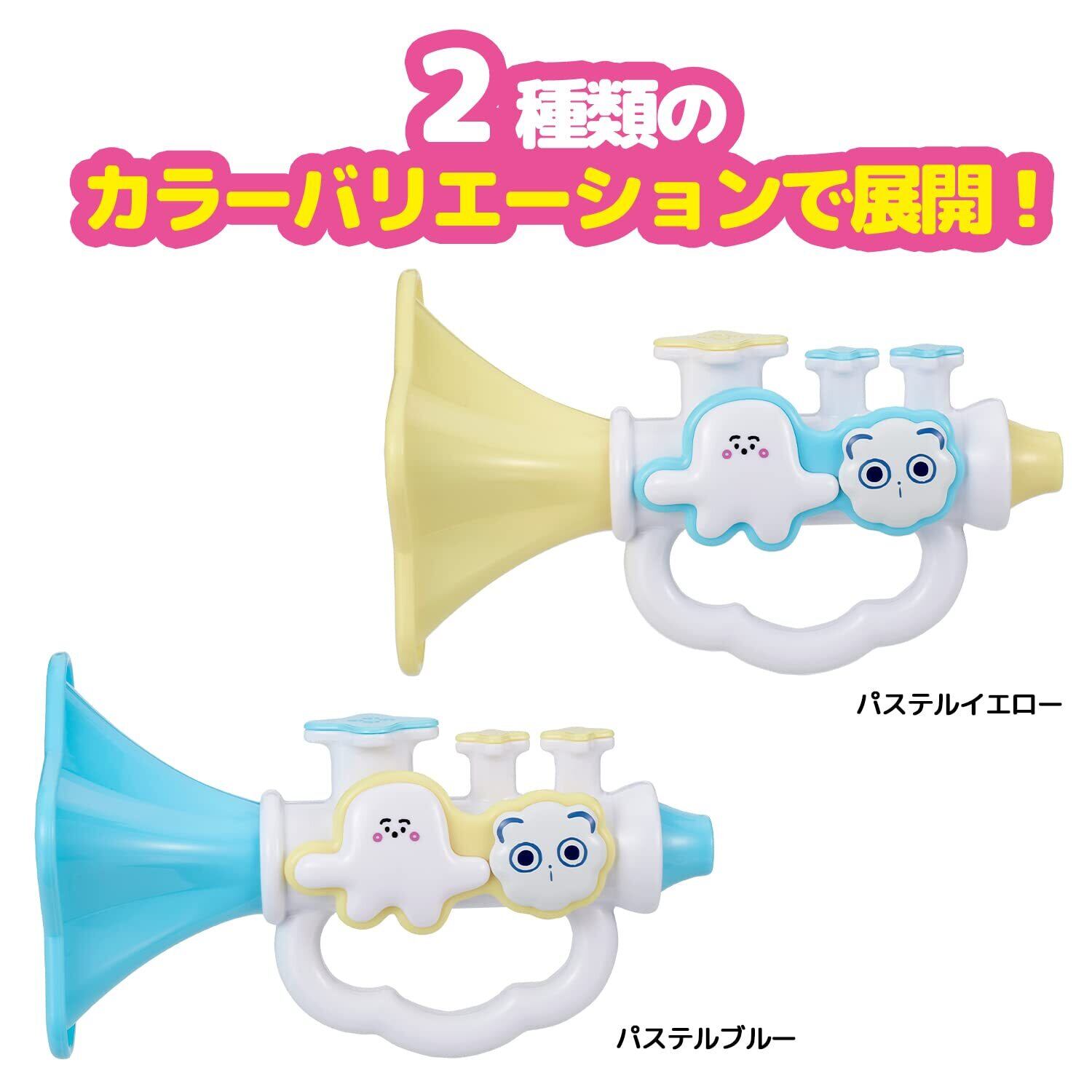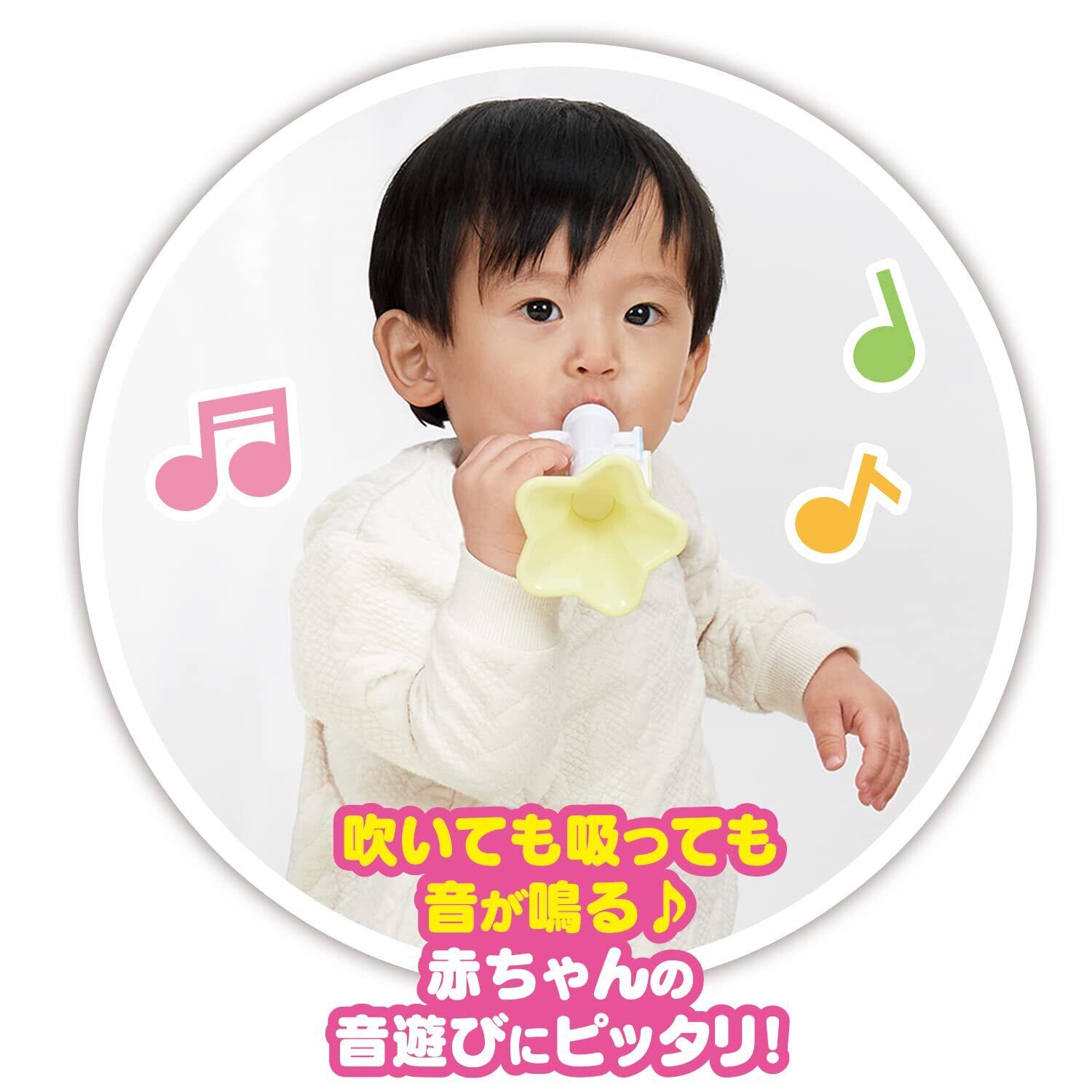 吹いても吸っても音が鳴る 赤ちゃんがストレスなく楽しめるラッパのおもちゃです。