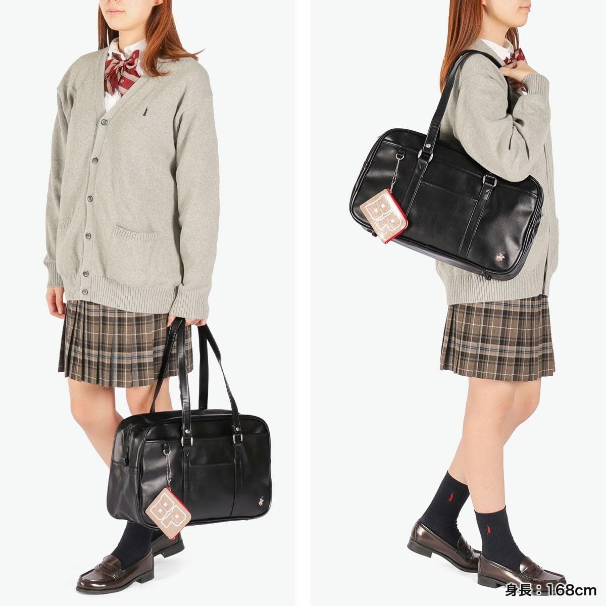 【特価セール】BEVERLY HILLS POLO CLUB(ビバリーヒルズポロクラブ) 合皮 スクールバッグ ボストンバッグ 茶色 黒 高校生 女子 男子 撥水 ポーチ付き bp002 (クロベージュ)