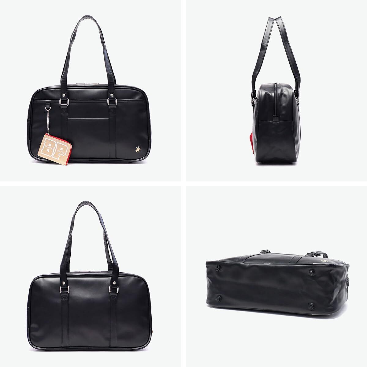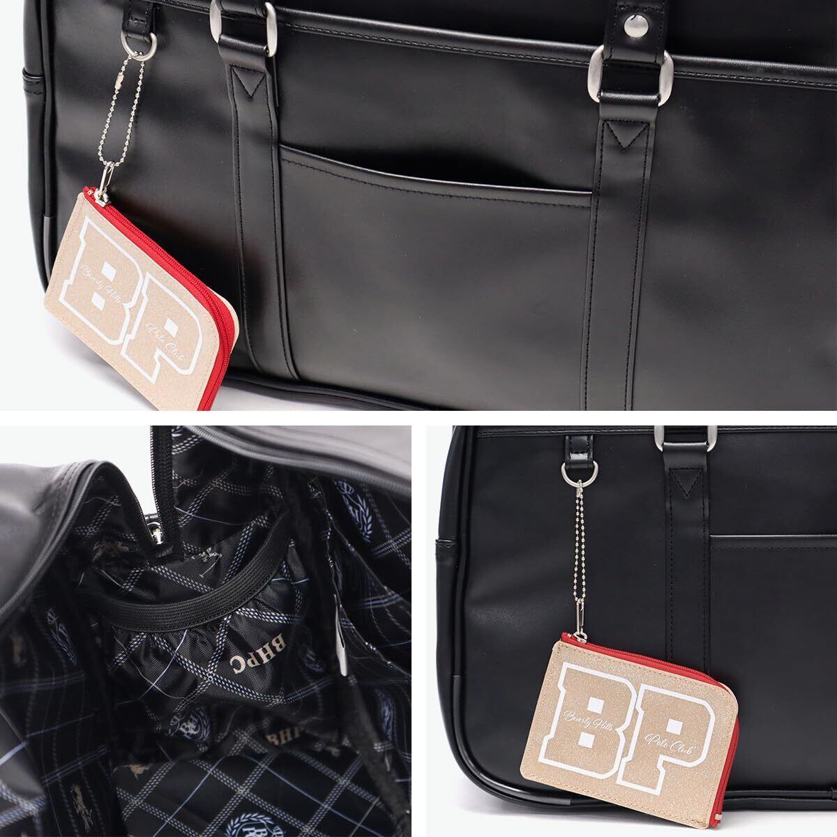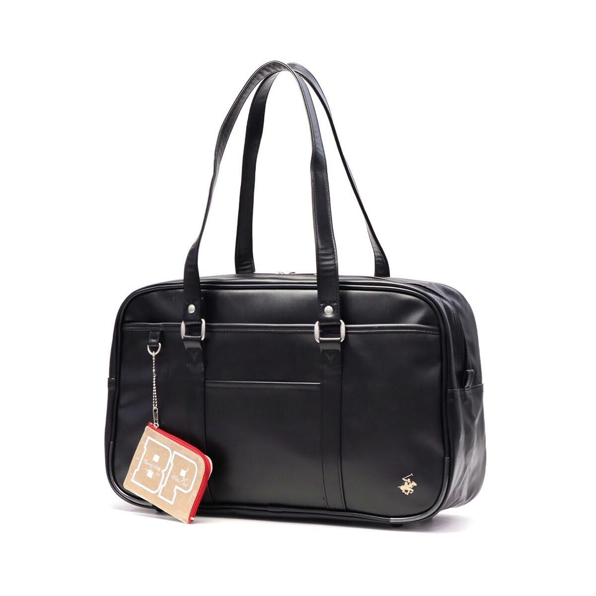 BEVERLY HILLS POLO CLUB(ビバリーヒルズポロクラブ) 合皮 スクールバッグ ボストンバッグ 茶色 黒 高校生 女子 男子 撥水 ポーチ付き bp002 (クロベージュ)