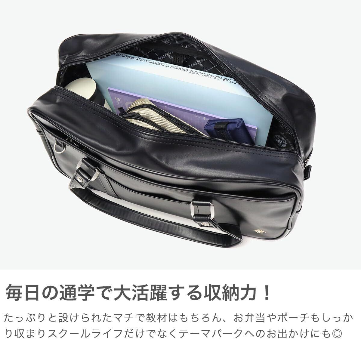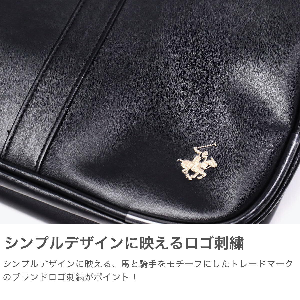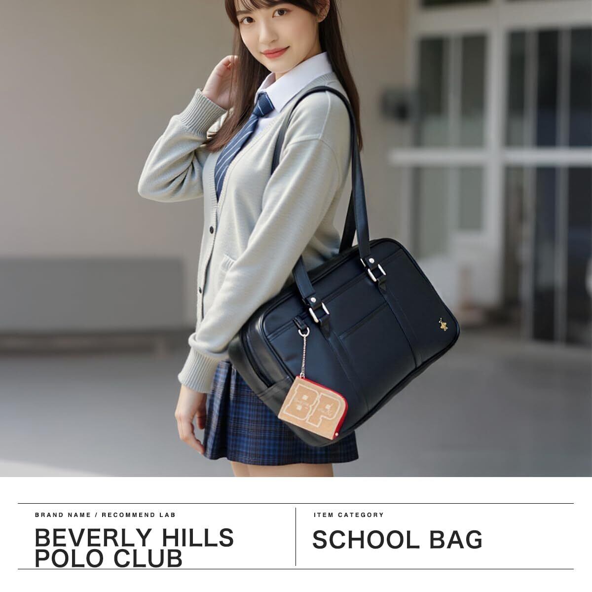 BEVERLY HILLS POLO CLUB(ビバリーヒルズポロクラブ) 合皮 スクールバッグ ボストンバッグ 茶色 黒 高校生 女子 男子 撥水 ポーチ付き bp002 (クロベージュ)