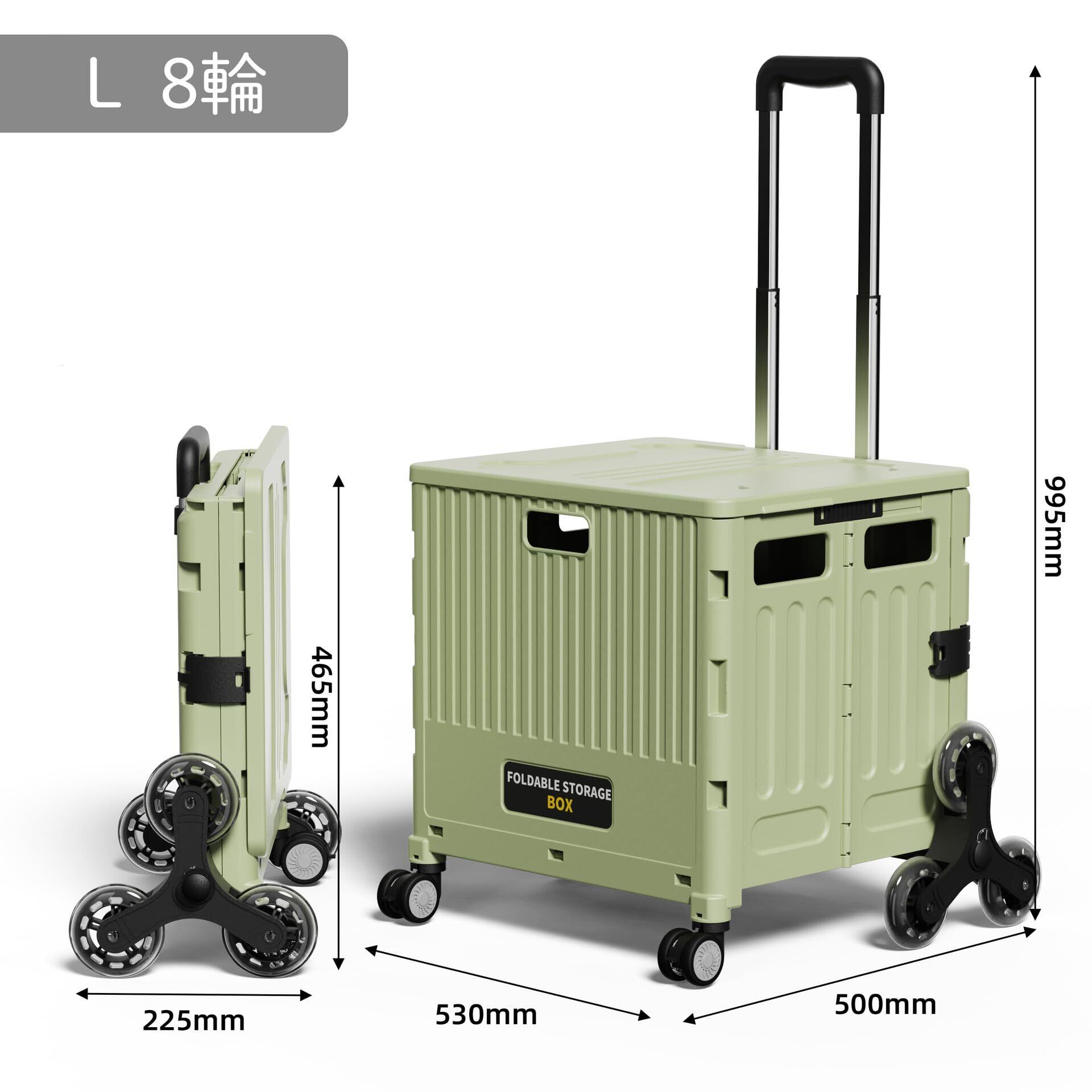ショッピングカート 折りたたみ ストッパー付き 静音キャスター 3色 買い物カート (グリーン, L (8輪))