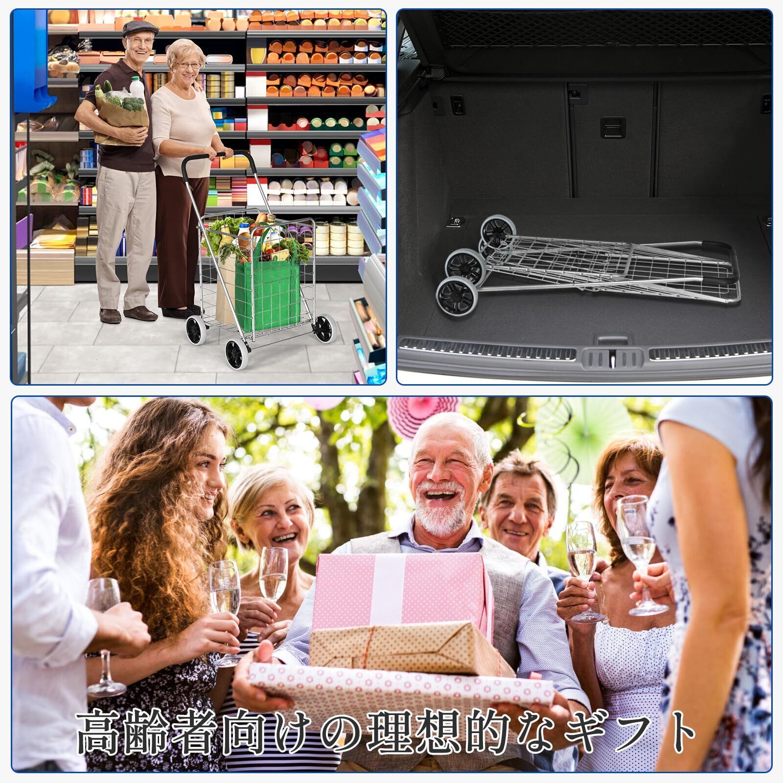 【人気商品】GIANTEX ショッピングカート 折り畳み 4輪 耐荷重20kg ショッピングキャリー 買い物カート 大容量 収納便利 横押し 多用途 アウトドア 高齢者 プレゼント 荷物運搬 引越し 買い物 キャン 釣り ピクニックに最適 (M-シルバー)