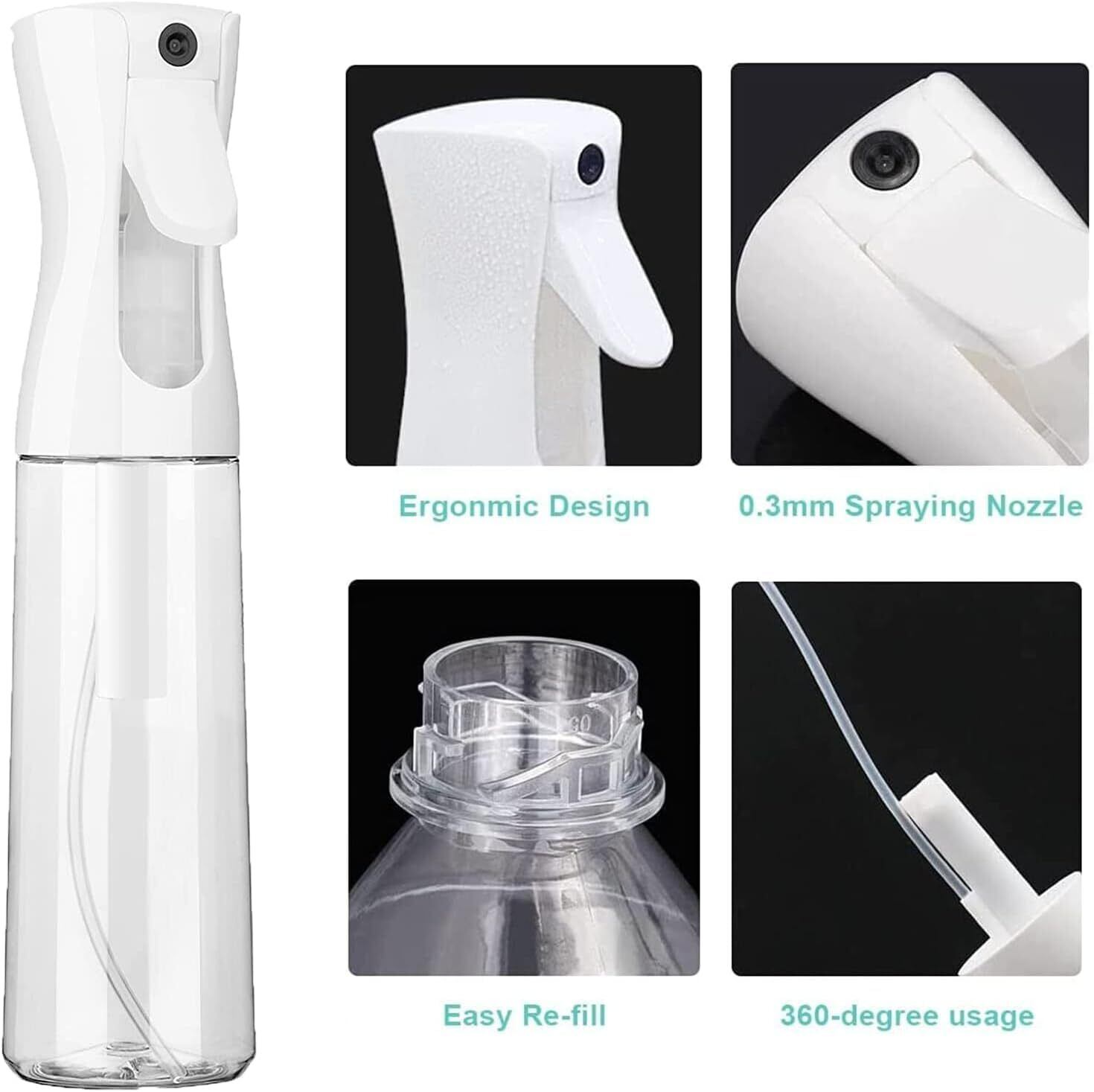 YAMYONE 霧吹き ミストスプレーボトル アルコール対応 300ml 連続噴射 極細噴霧 観葉植物用 園芸用 アイロン 美容室用 清掃用 家用 ペット用 おしゃれ 透明