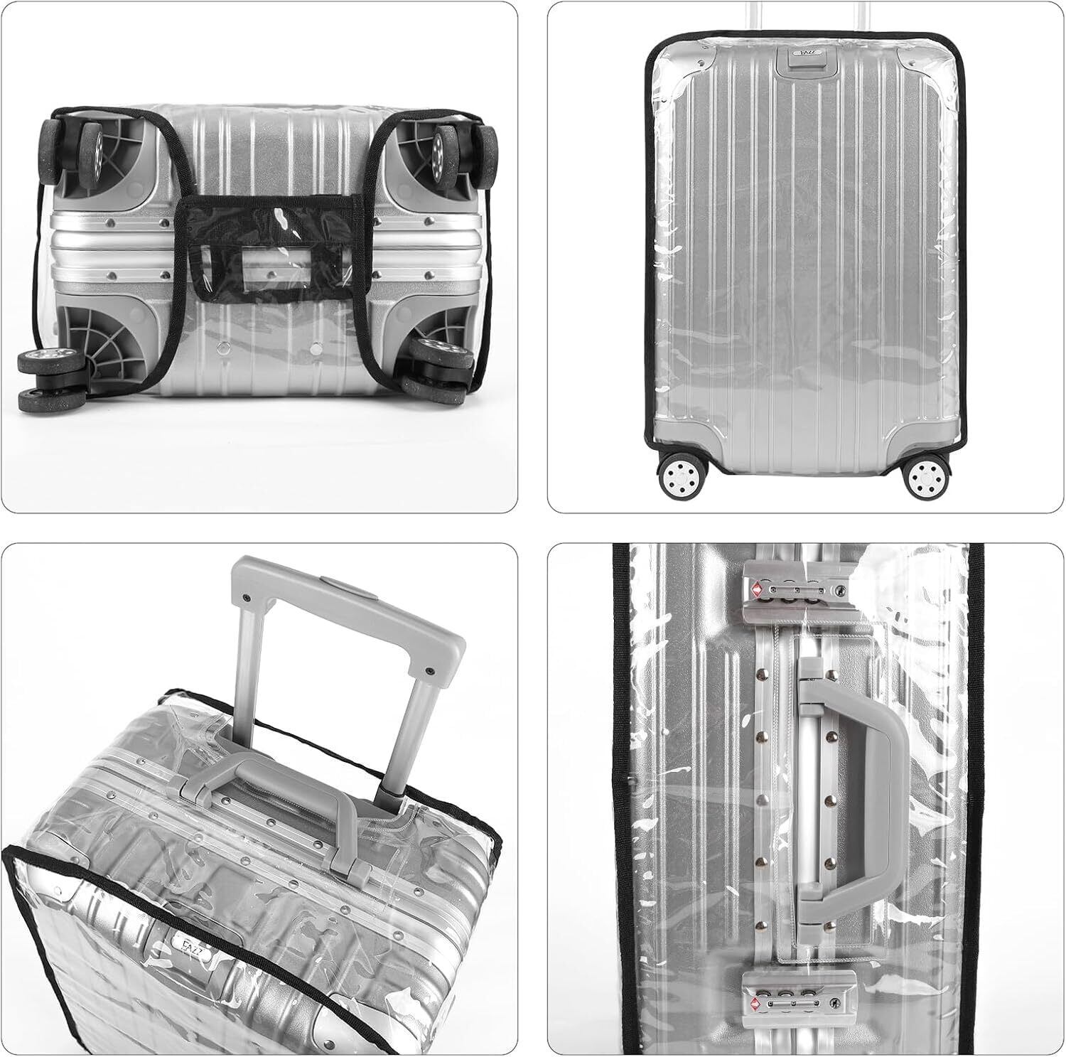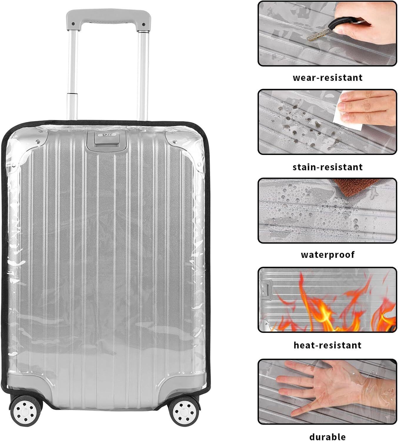 スーツケースカバー PVC 透明 黒縁 防水 防塵 傷防止 汚れ防止 キャリーケースカバー 軽量 耐久性 旅行・出張に最適 スーツケース保護用 簡単取り付け ラゲッジカバー